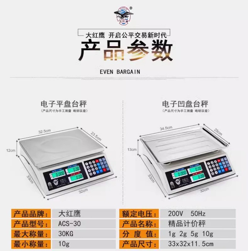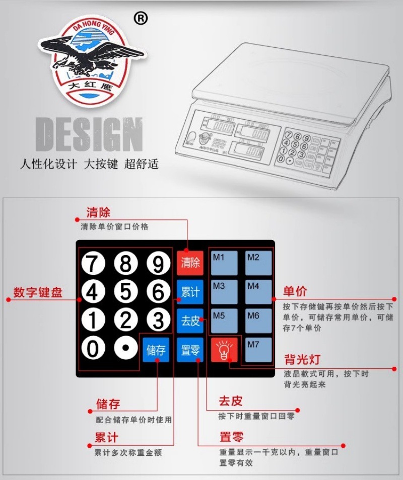 大红鹰 电子台秤 799黑字塑料凹盘实体店版不带M 1个