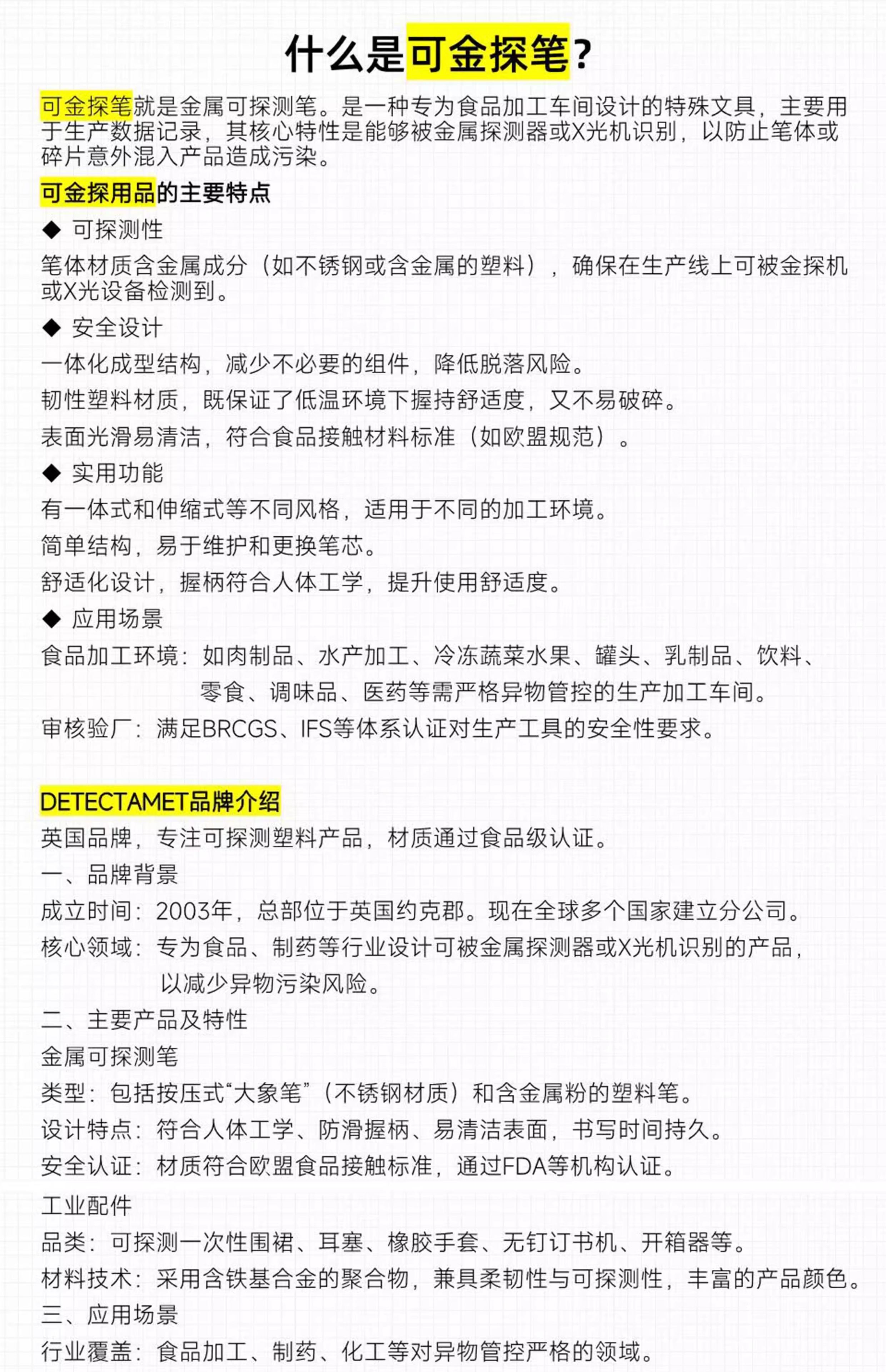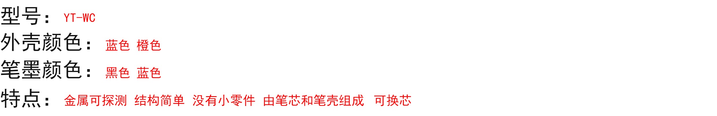 detectamet 金属可检测圆珠笔 YT-WC 蓝壳 蓝墨 1支