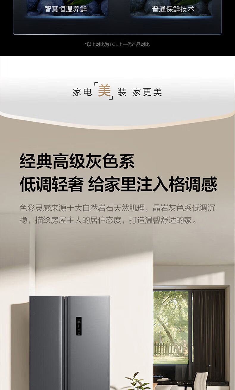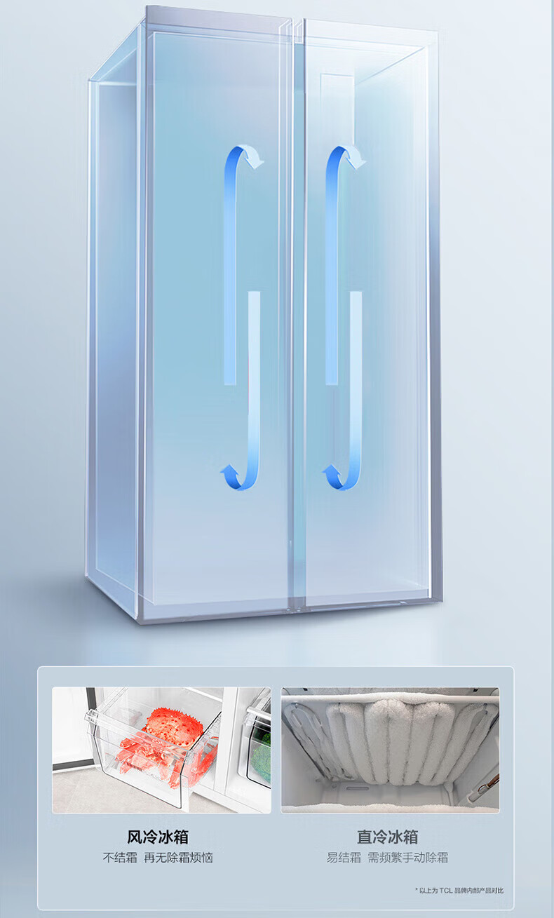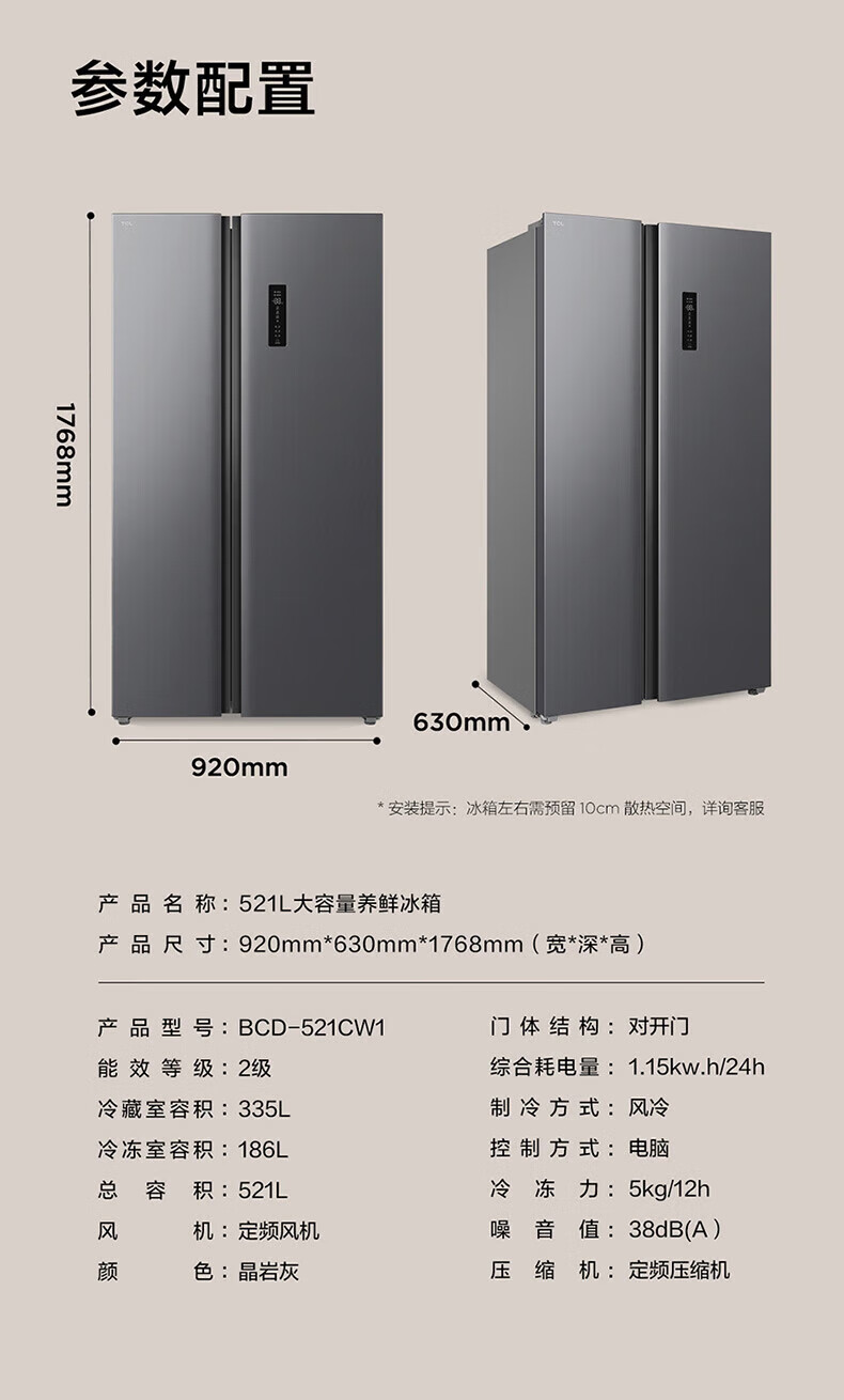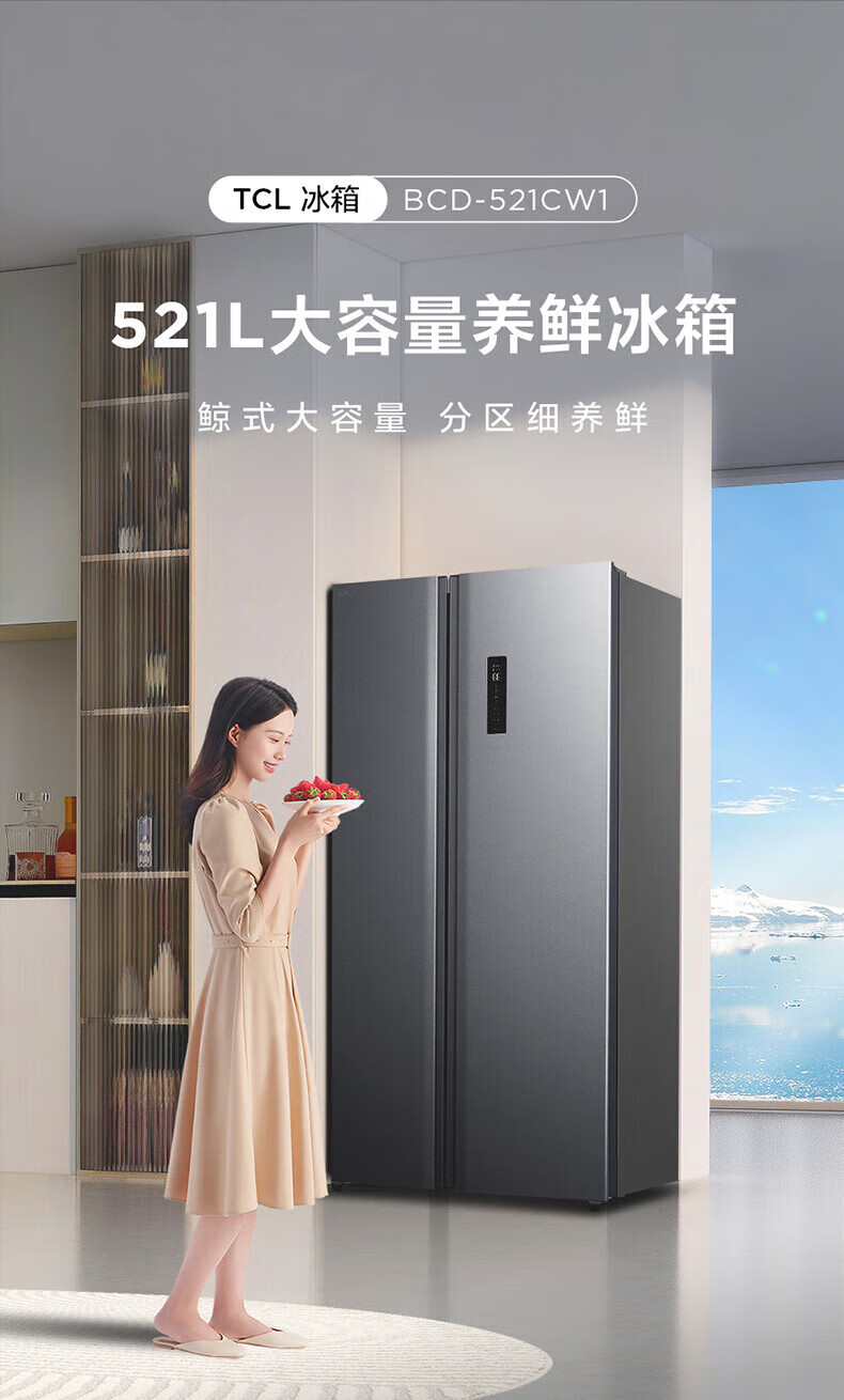 TCL 对开门电冰箱 BCD-521CW1 银灰色 2级能效 521L 1台