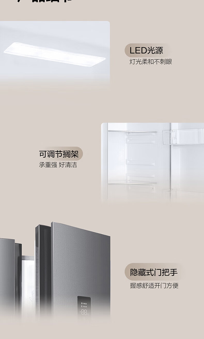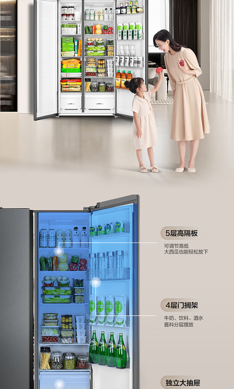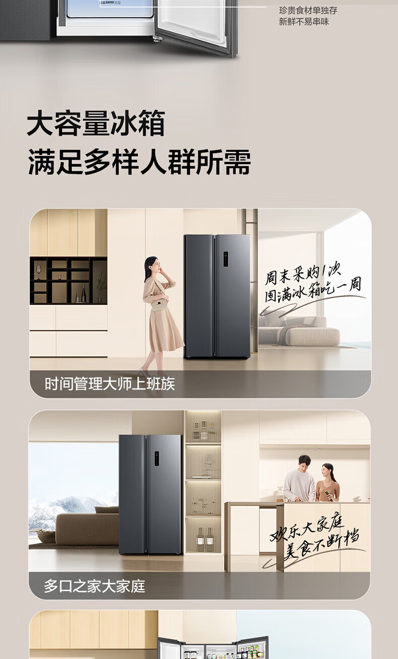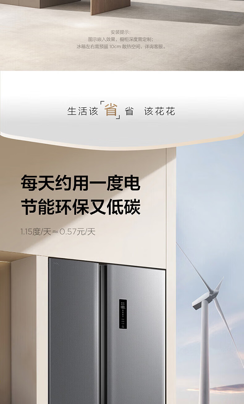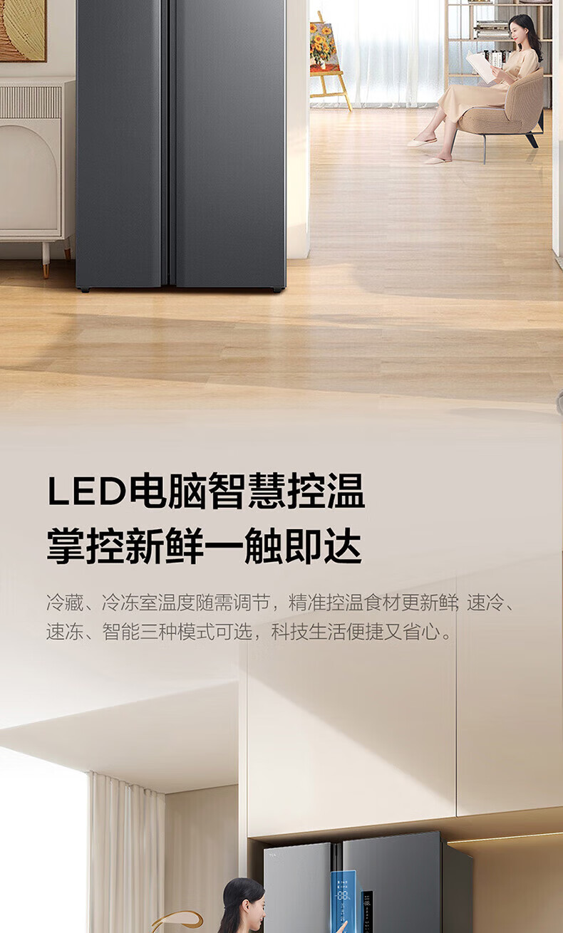 TCL 对开门电冰箱 BCD-521CW1 银灰色 2级能效 521L 1台