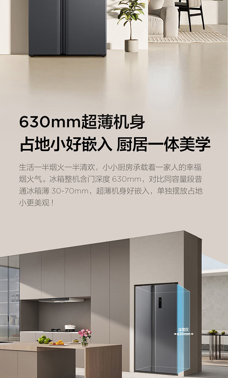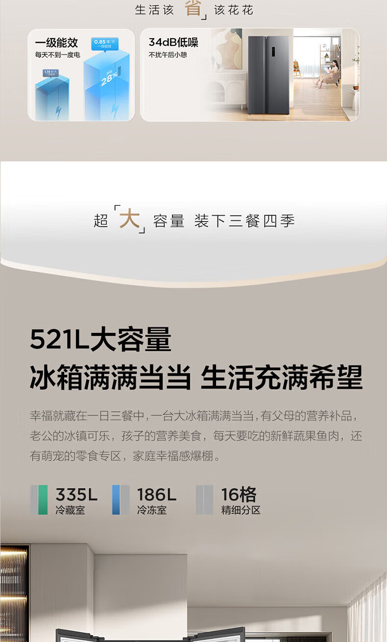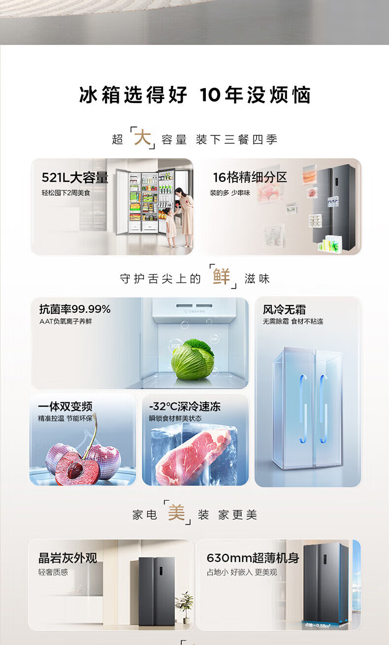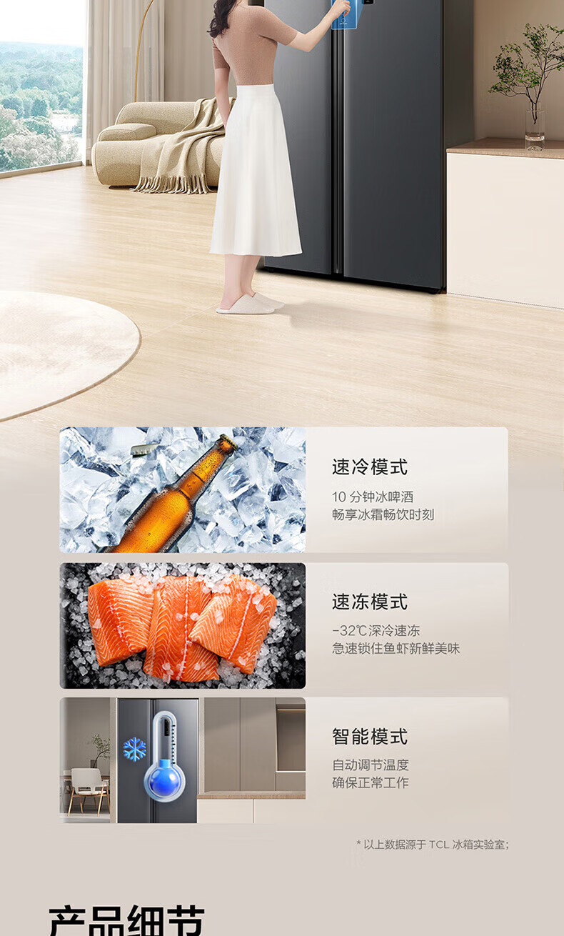 TCL 对开门电冰箱 BCD-521CW1 银灰色 2级能效 521L 1台