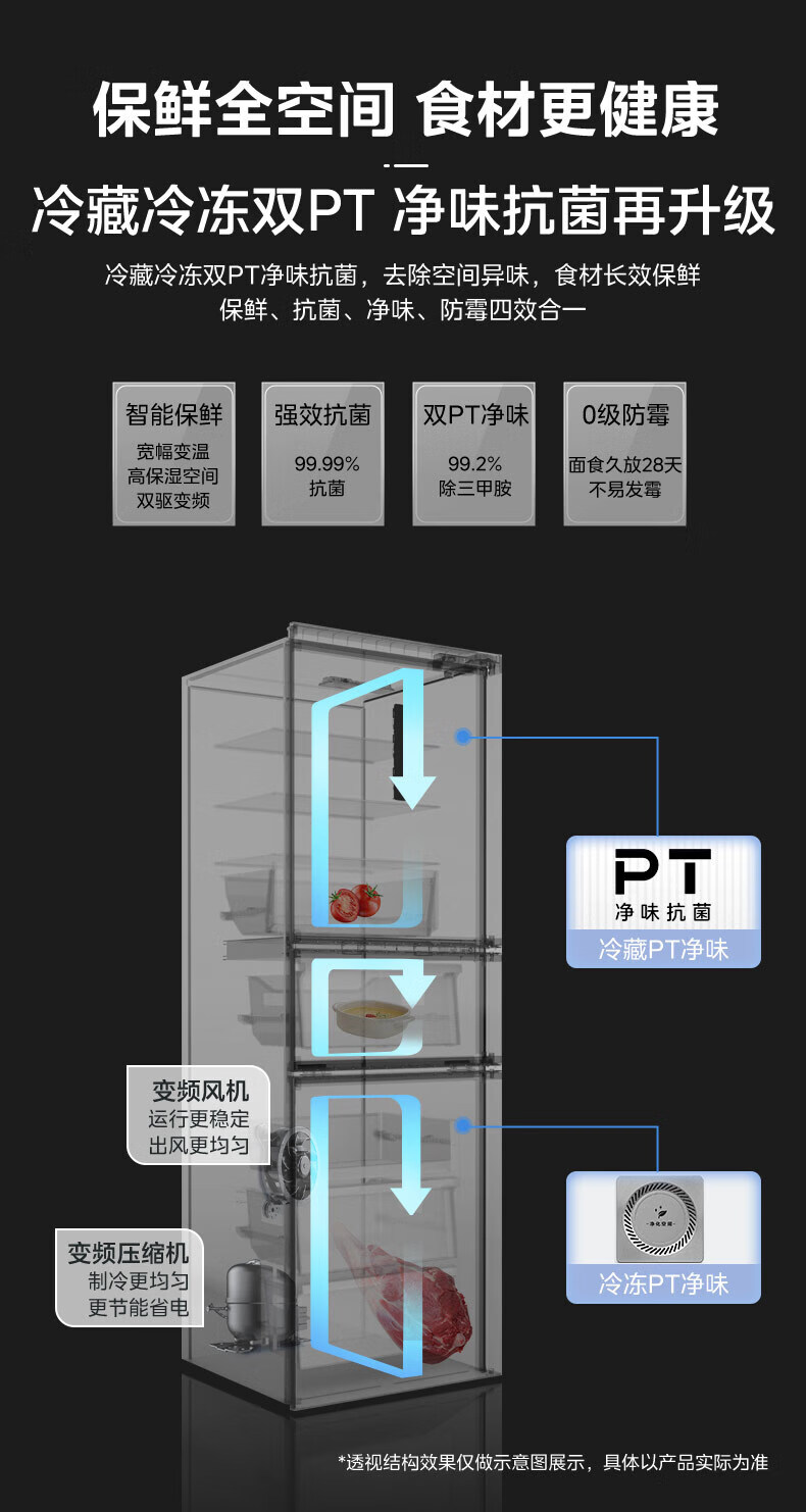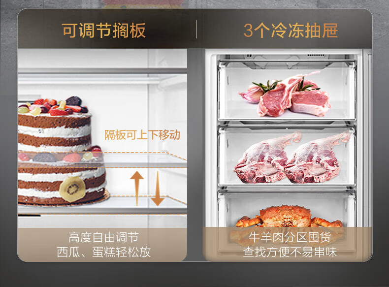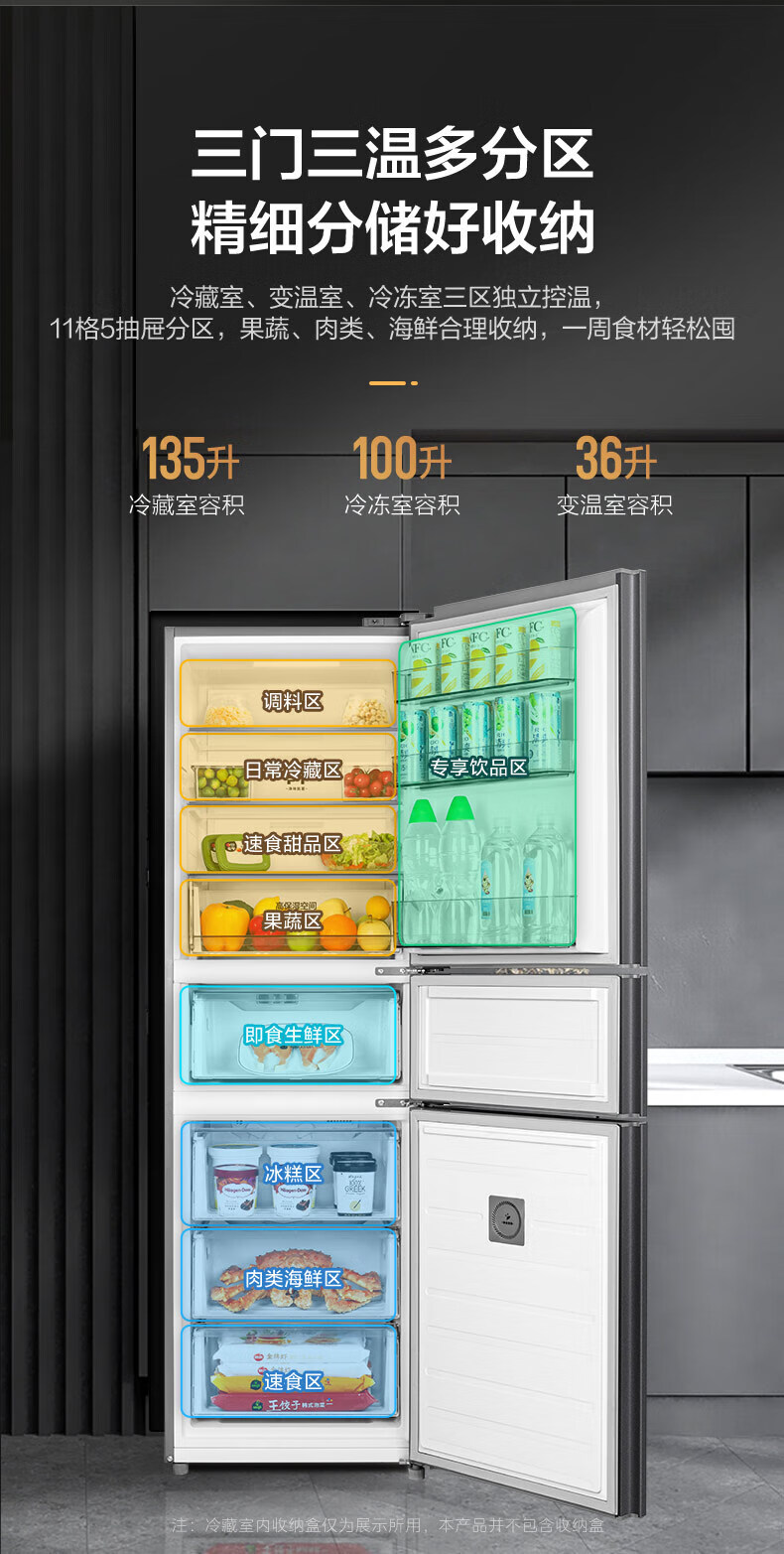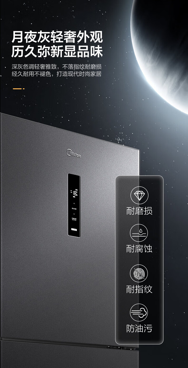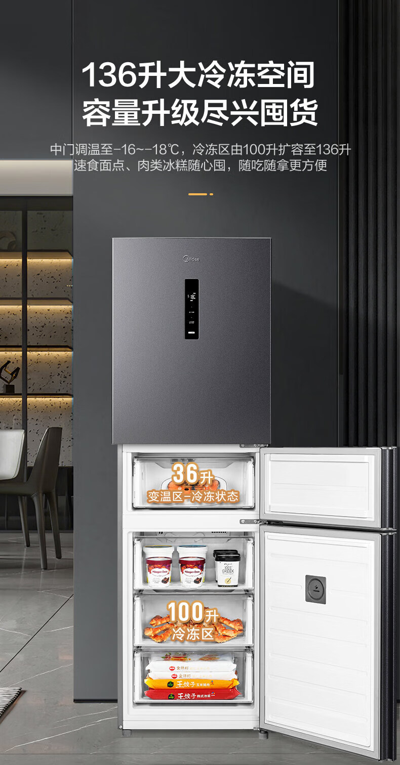 美的 三开门电冰箱 MR-283WTPZE 灰色 一级能效 271L 1台
