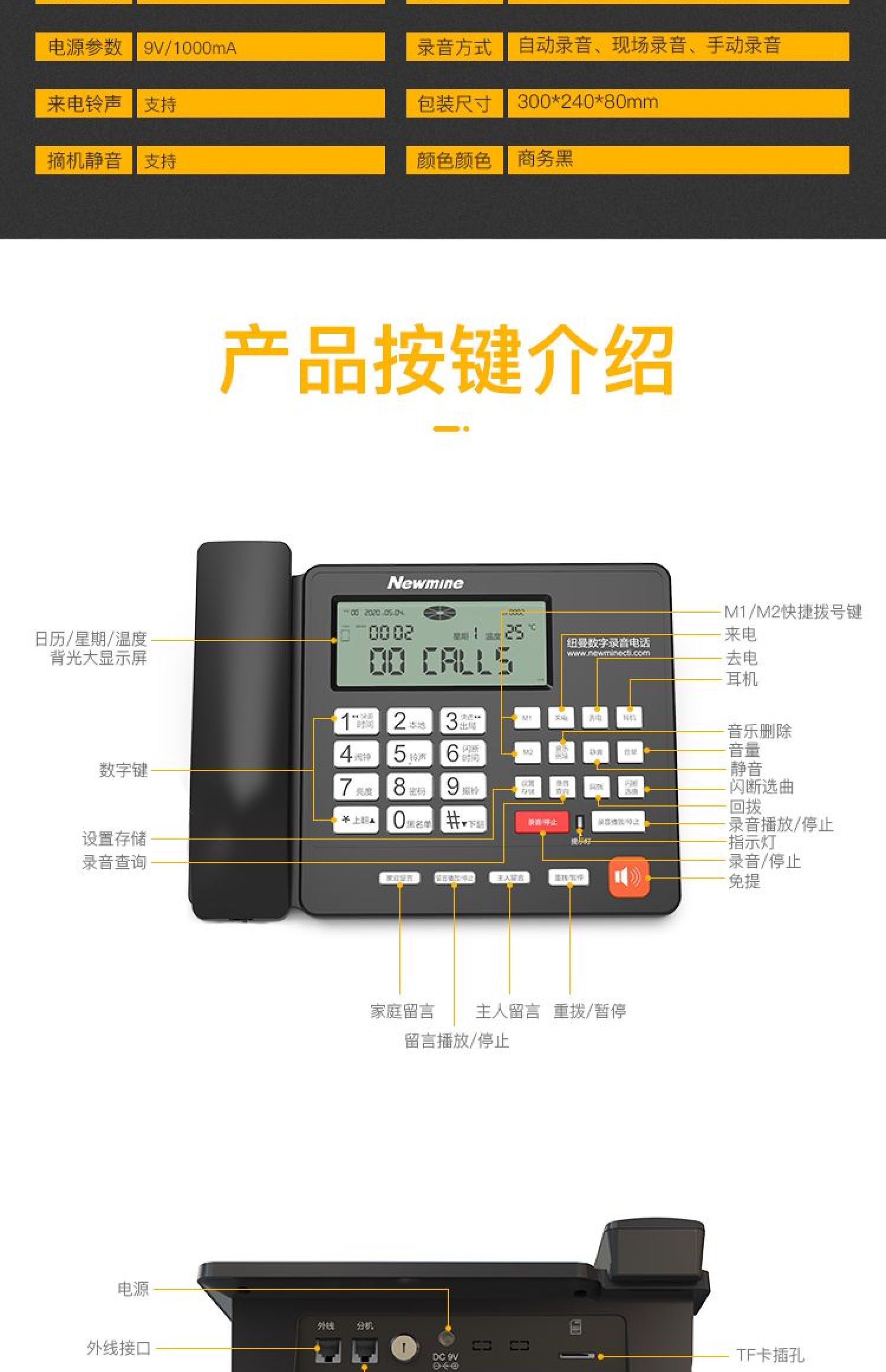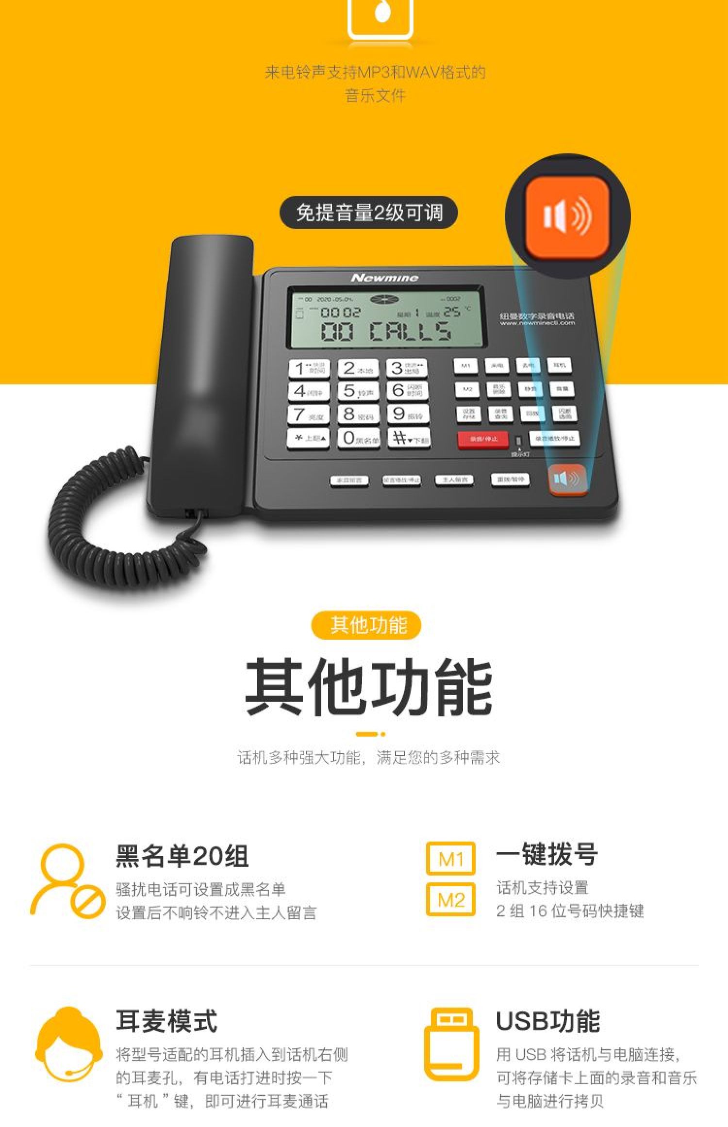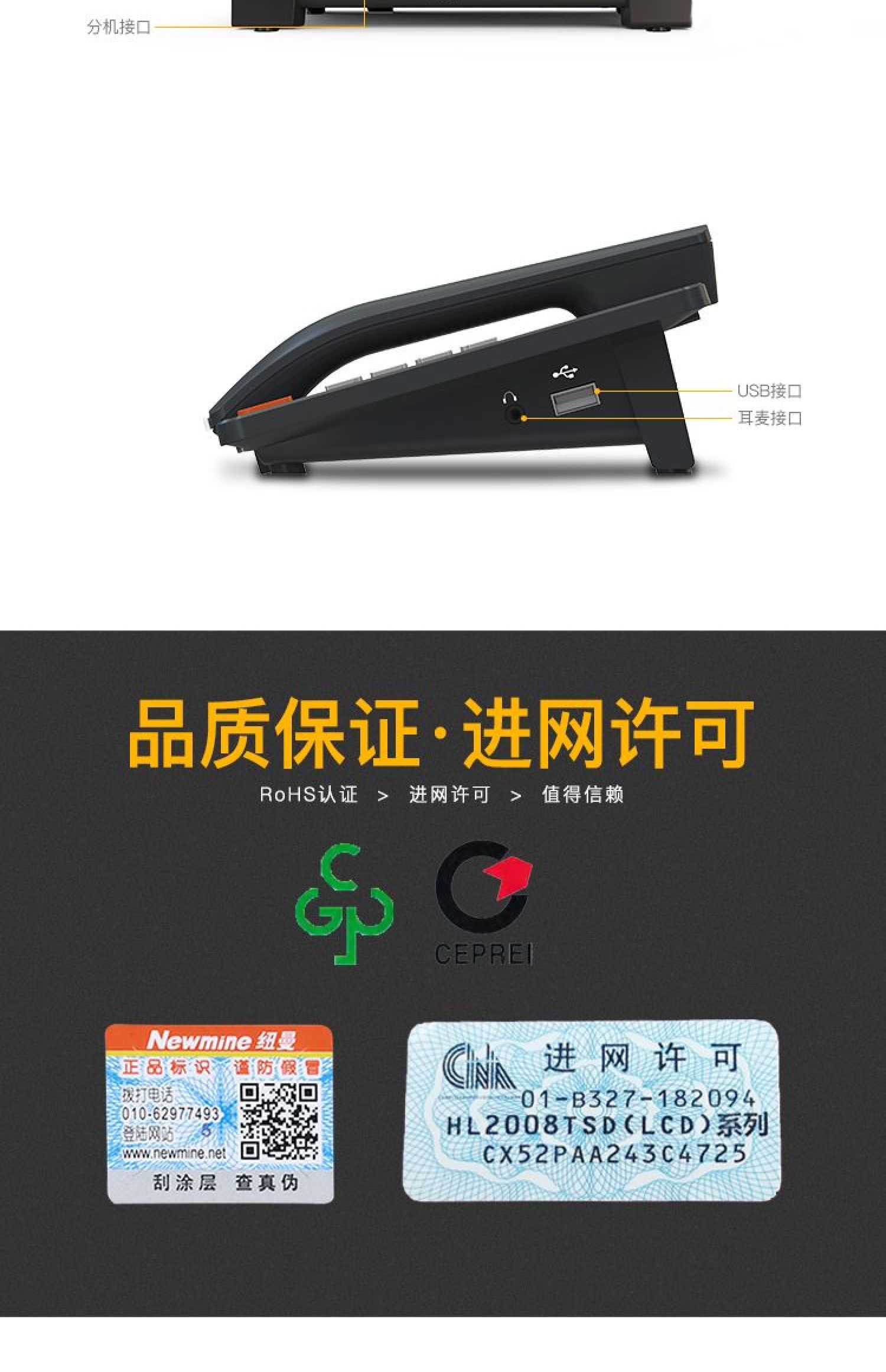 纽曼 自动录音电话机 HL2008TSD -118(R) 黑色 1个