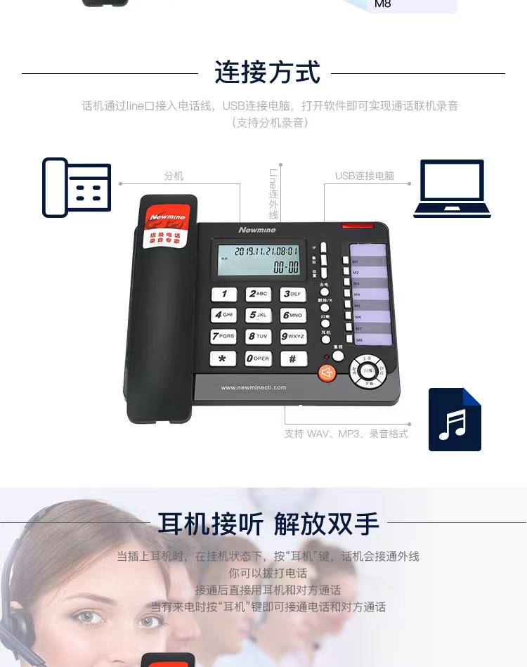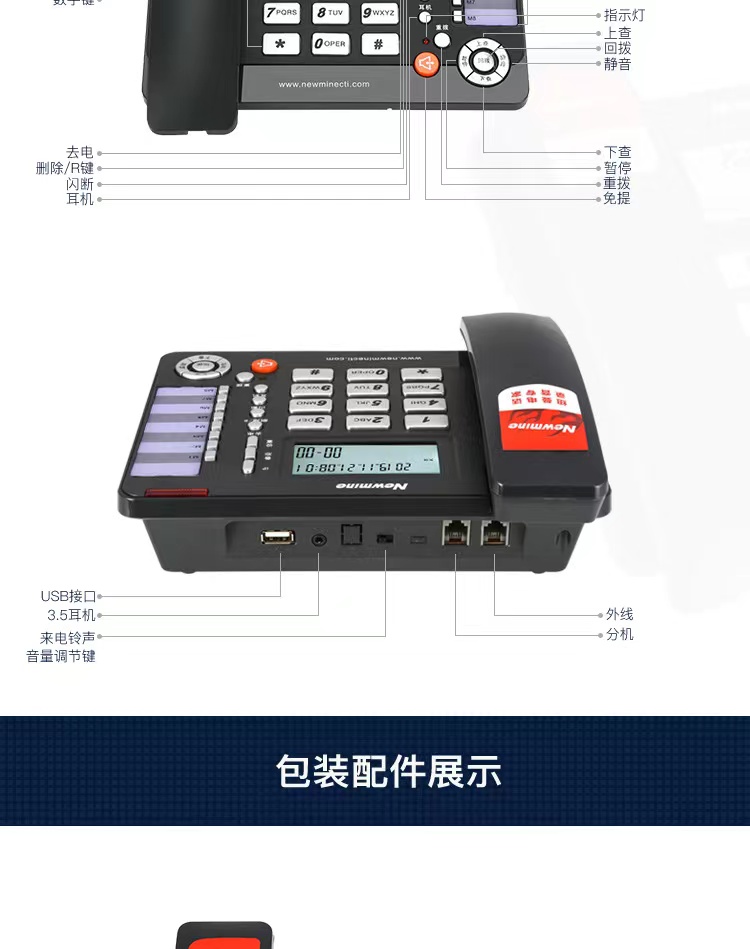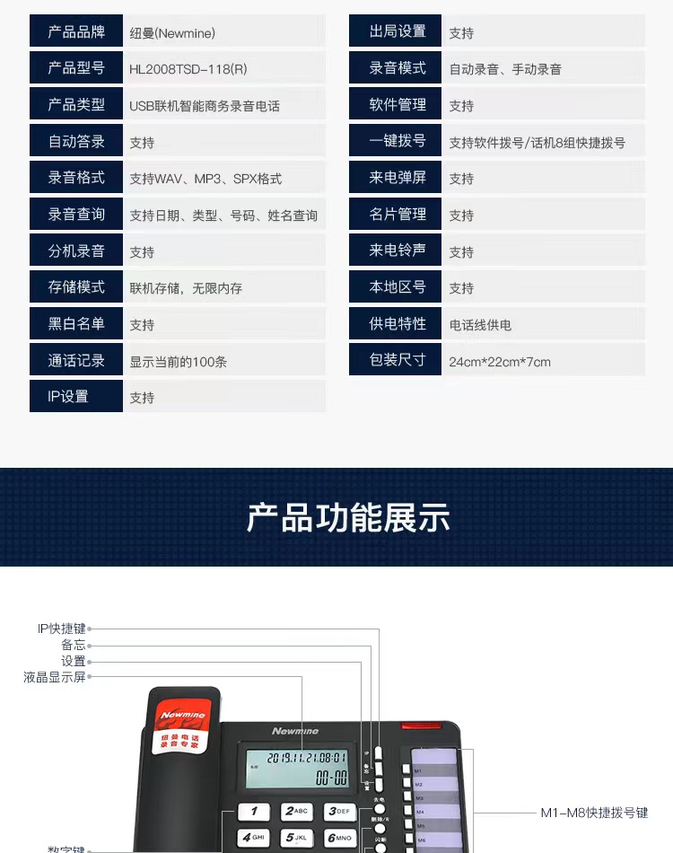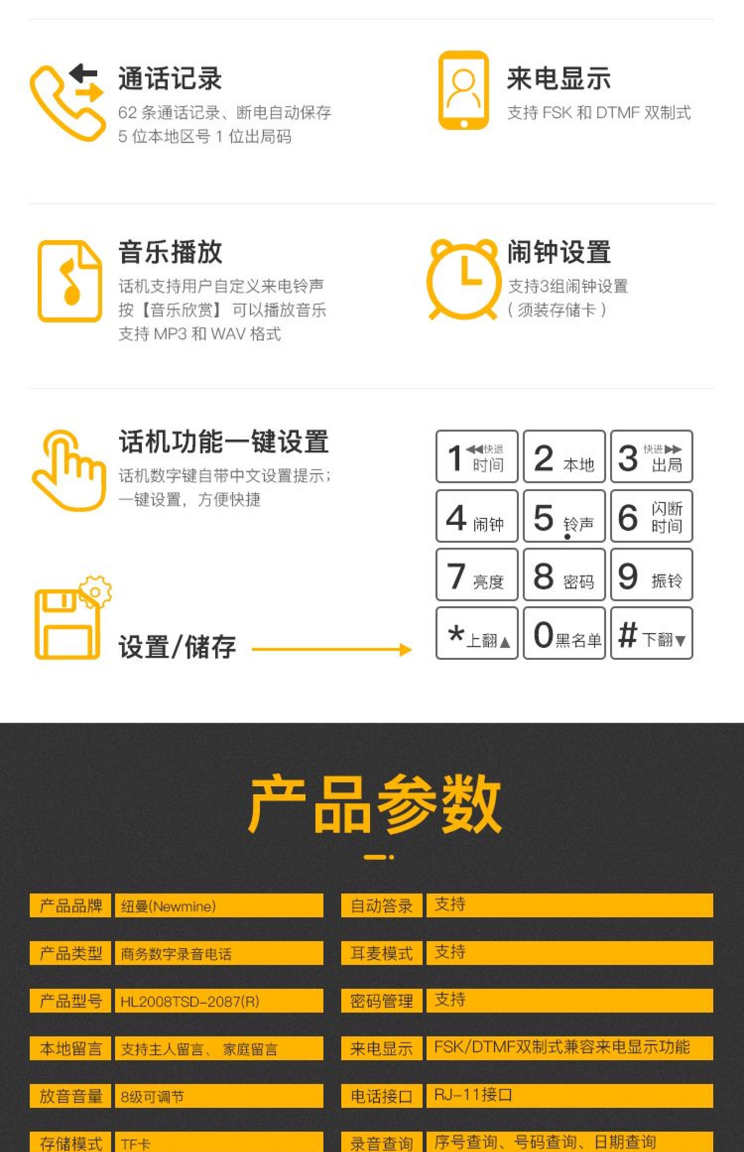 纽曼 自动录音电话机 HL2008TSD -118(R) 黑色 1个