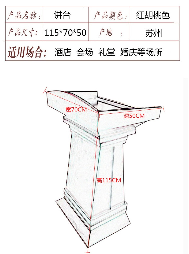 海斯迪克 讲台 红胡桃实木皮 1150*700*500mm 1个