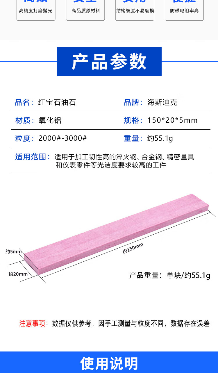 海斯迪克 红宝石油石 KK8-2 150*20mm 1个