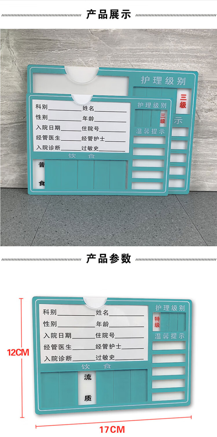 海斯迪克 病房床头卡护理牌 KS47-1 亚克力 12*17cm 1个