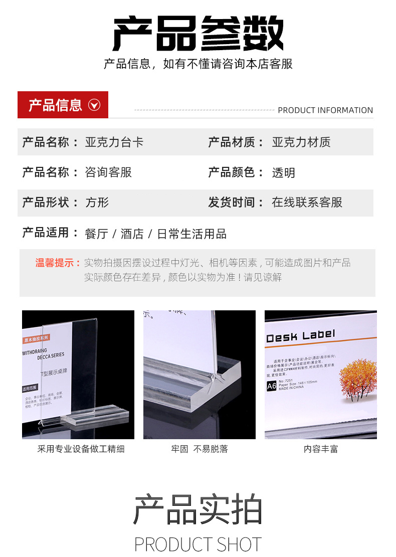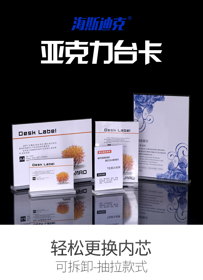 海斯迪克 亚克力台卡展示牌 KS51-1 抽拉横款 10*15cm厚1.3mm 1个