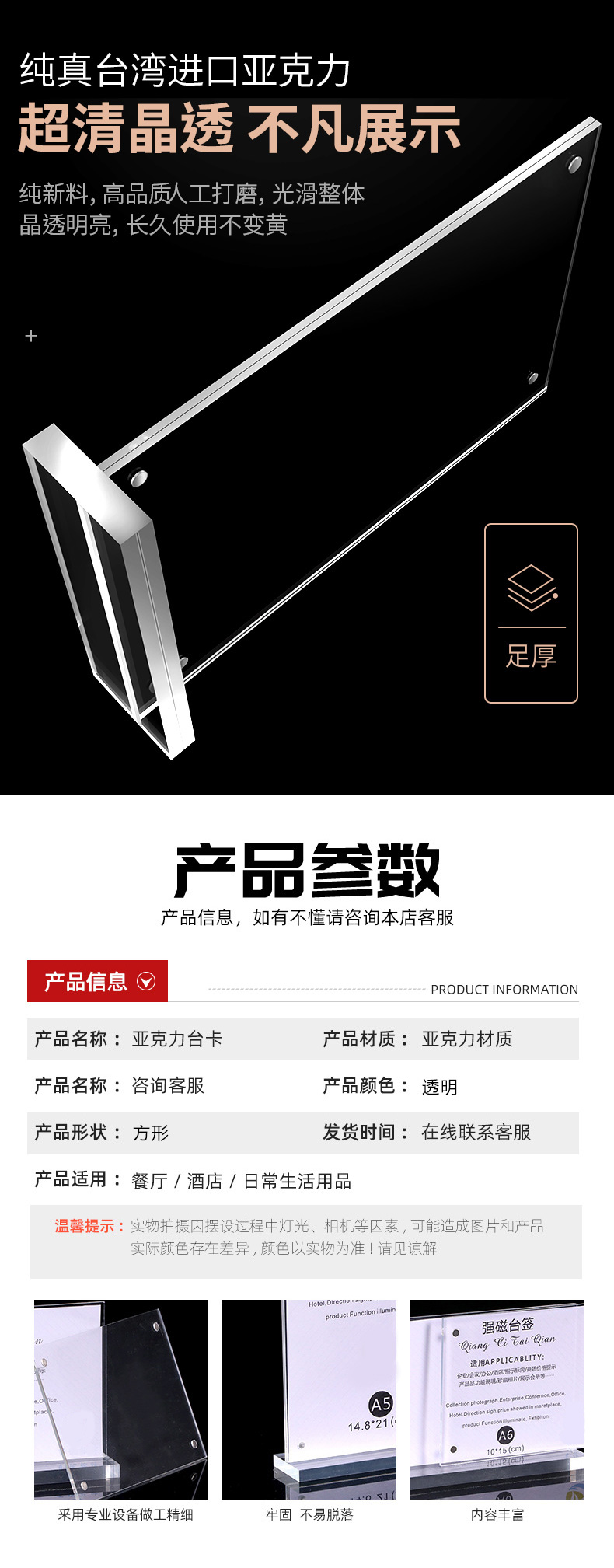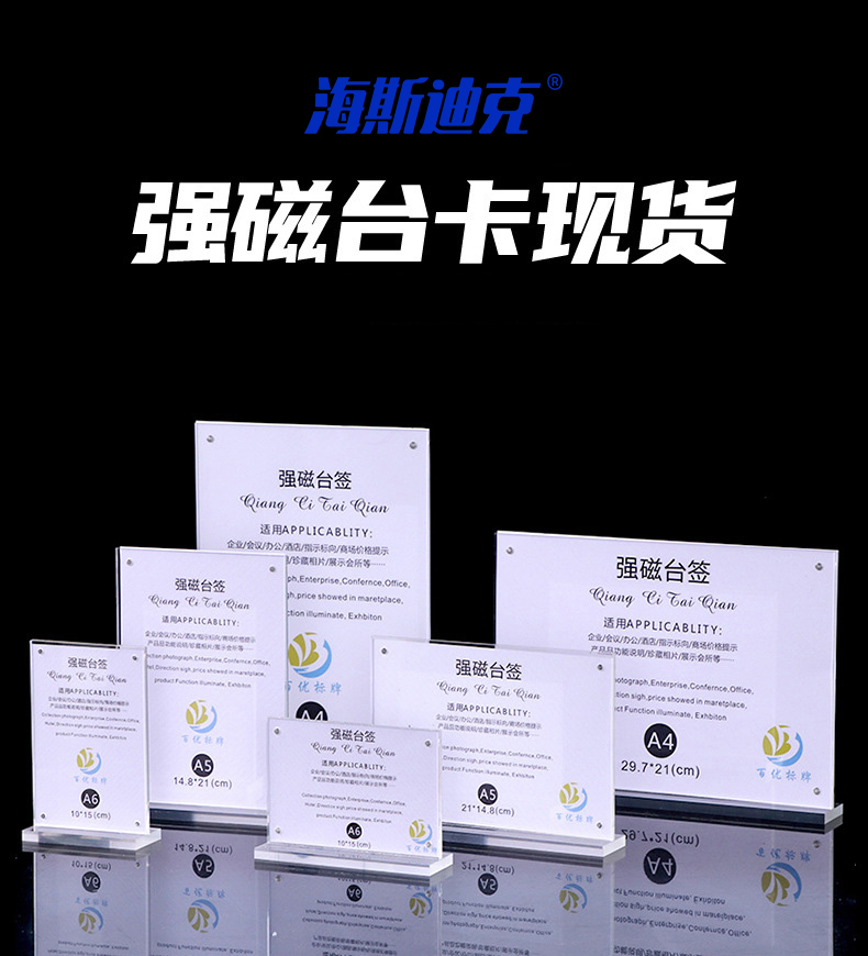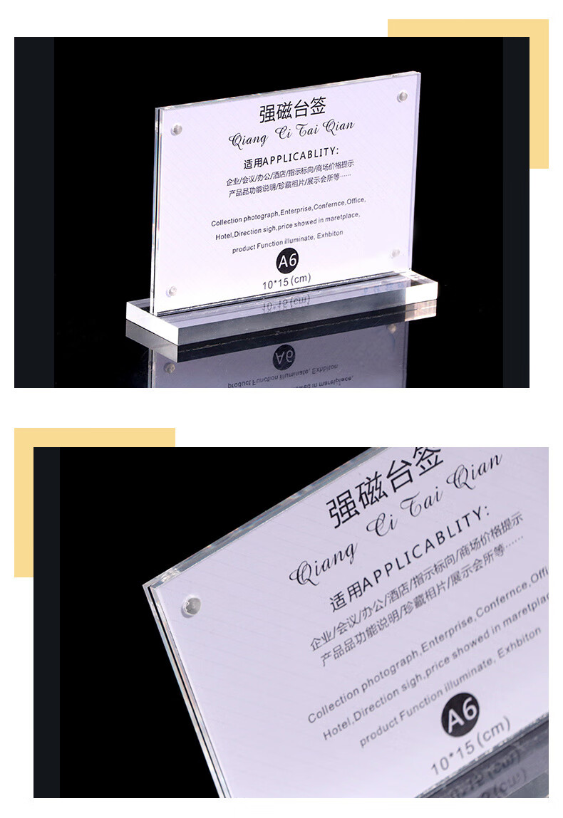 海斯迪克 亚克力台卡展示牌 KS51-12 强磁竖款 15*10cm厚1.3mm 1个