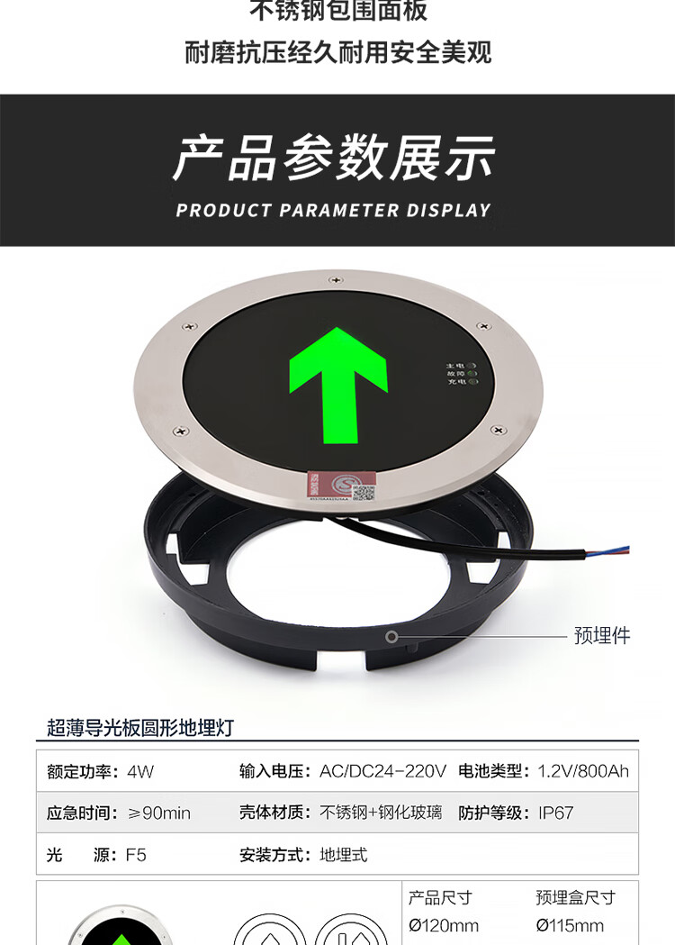 劳士 地面疏散指示灯 圆形 245mm DC24V-220V通用 1个