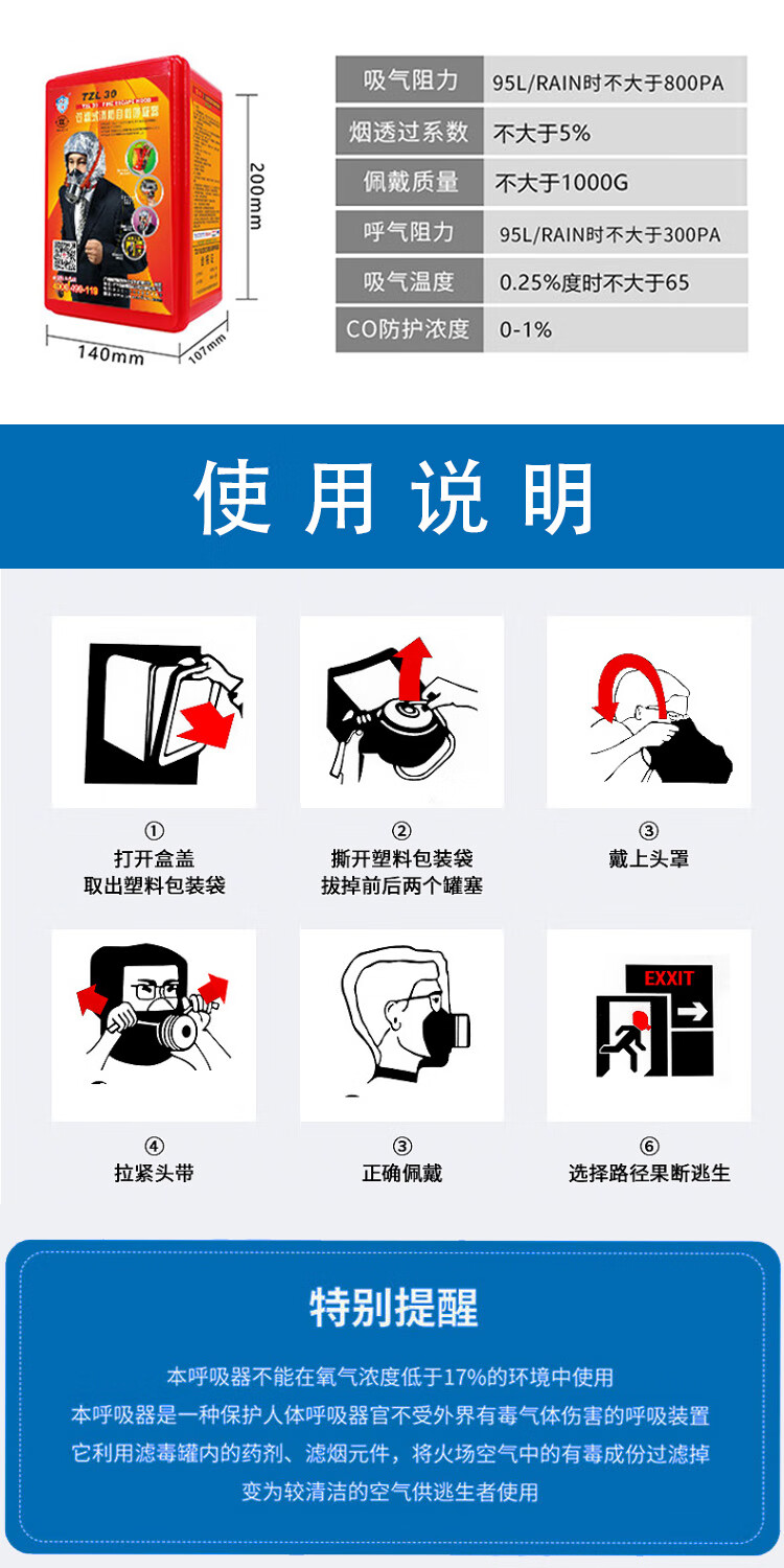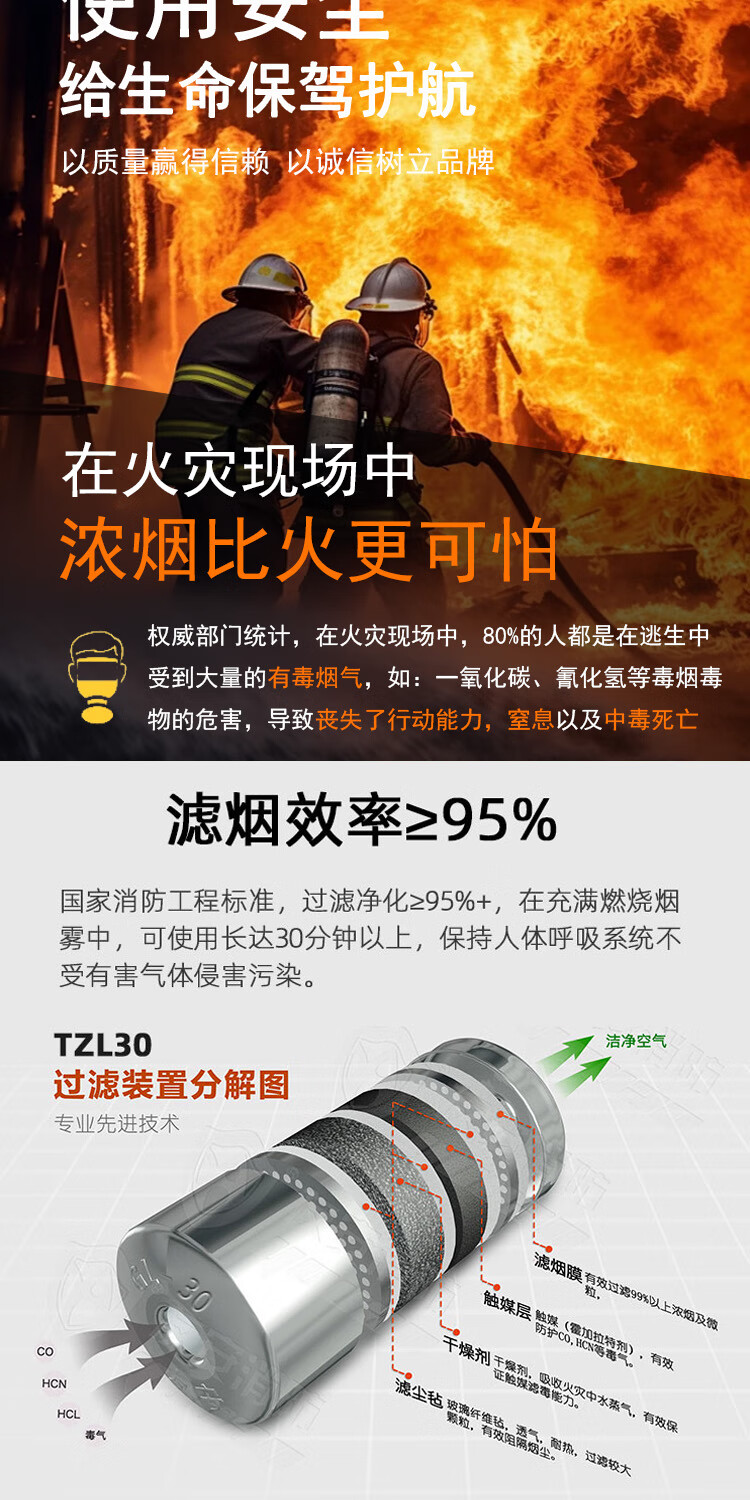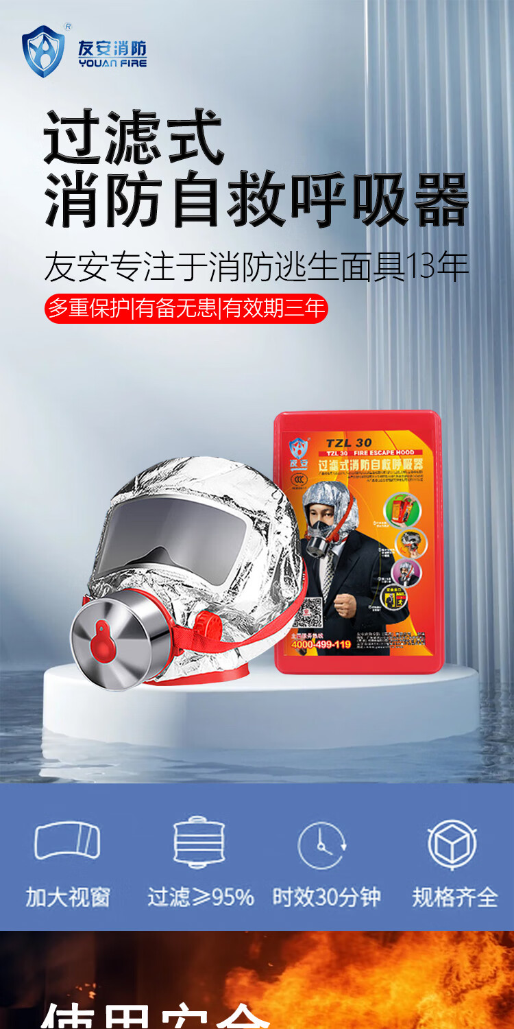 友安 防烟火灾逃生面具 TZL30 过滤式经典款 200×107×140mm 1个