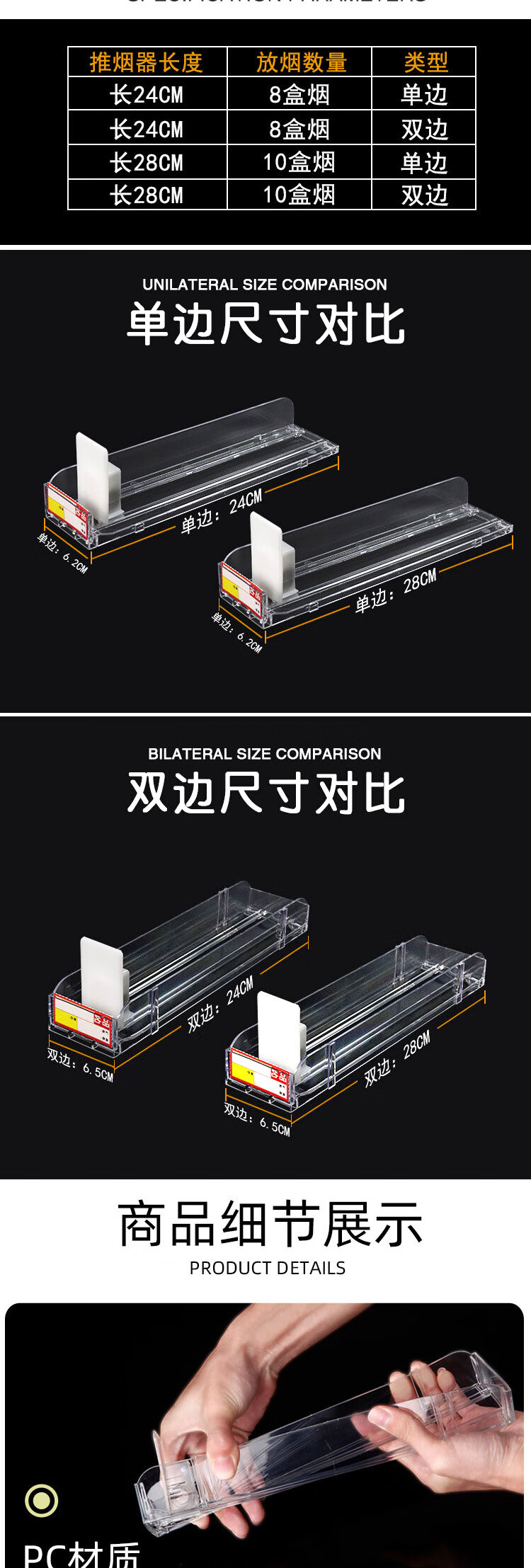海斯迪克 单边8包 一体式自动推烟器 KS75-4 亚克力 24cm 1个
