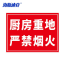 海斯迪克 厨房重地严禁烟火 标识牌 KS82-11 不干胶 20*30cm 1个