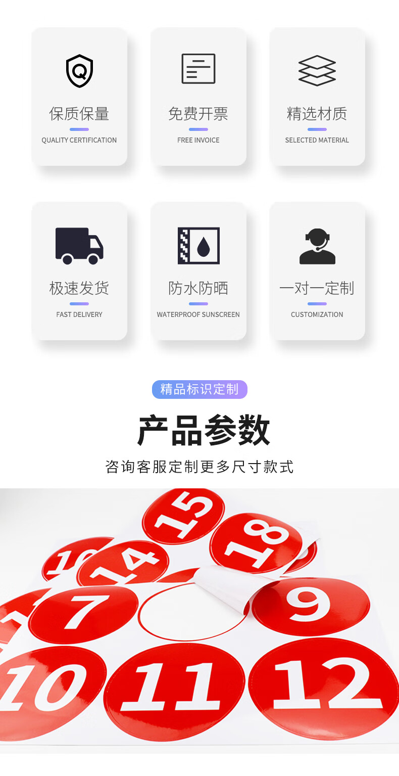 • 商品名称:海斯迪克 数字1-100 防水数字号码贴