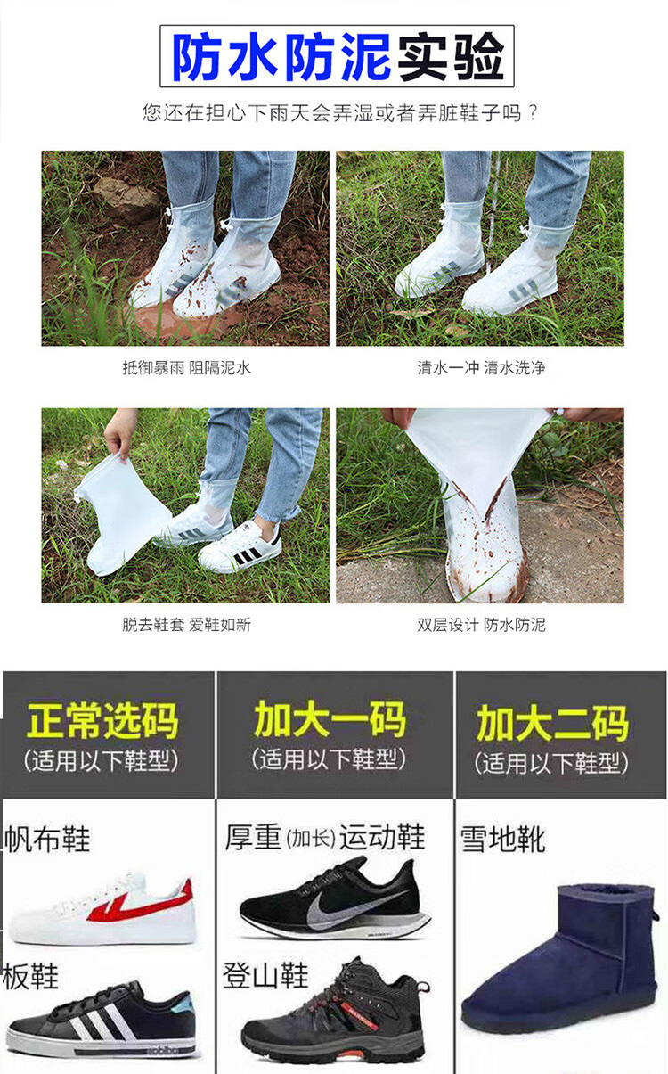 海斯迪克 PVC防水雨鞋套 KG40-6 磨砂白3XL 1双