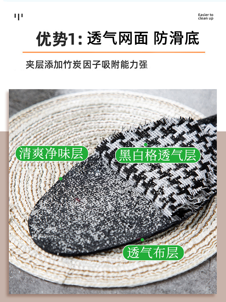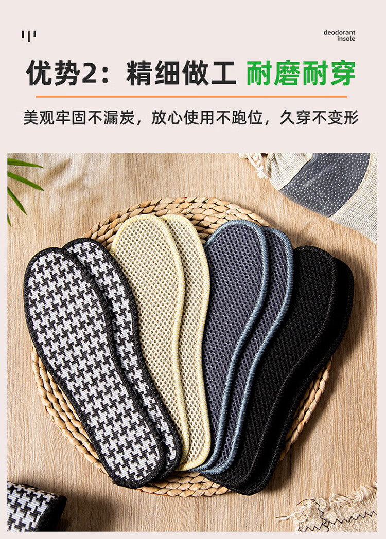 海斯迪克 吸汗竹炭布黑白鞋垫 KG43-7 44码 10双 1包