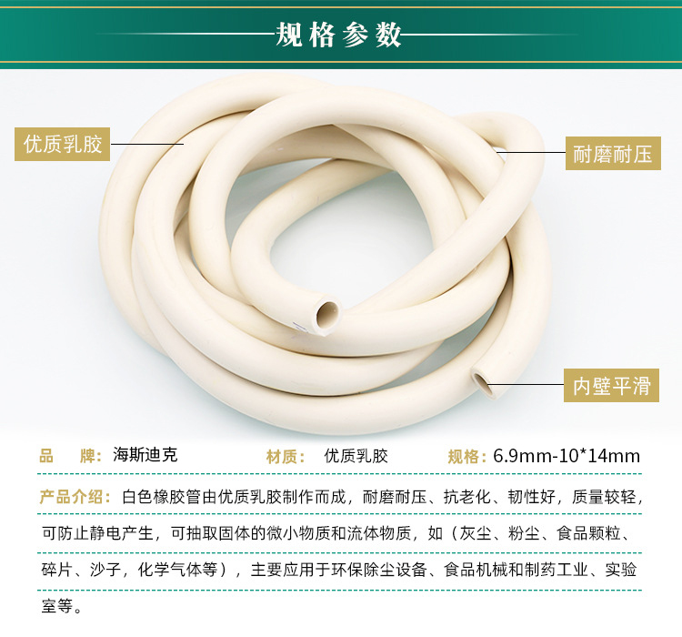 海斯迪克 白色橡胶软管 KL92-4 内径8×外径14mm 1米