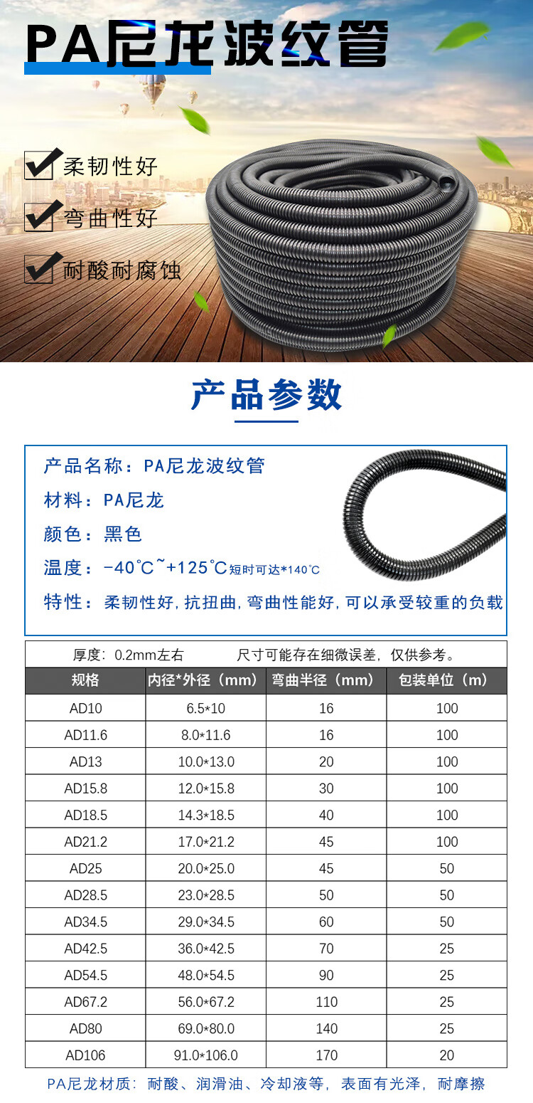 海斯迪克 PA尼龙波纹管 KL94-8 AD34.5(内径29mm) 50米 1卷