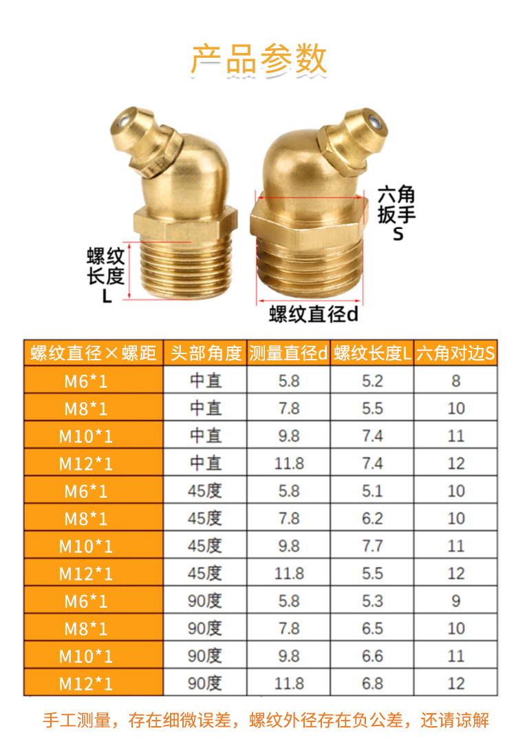 海斯迪克 国标铜黄油嘴 KL99-11 M10*1 直 10个 1包