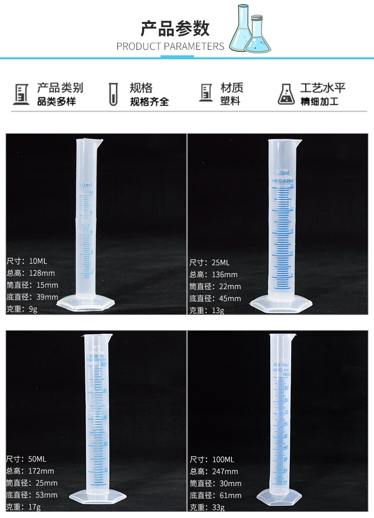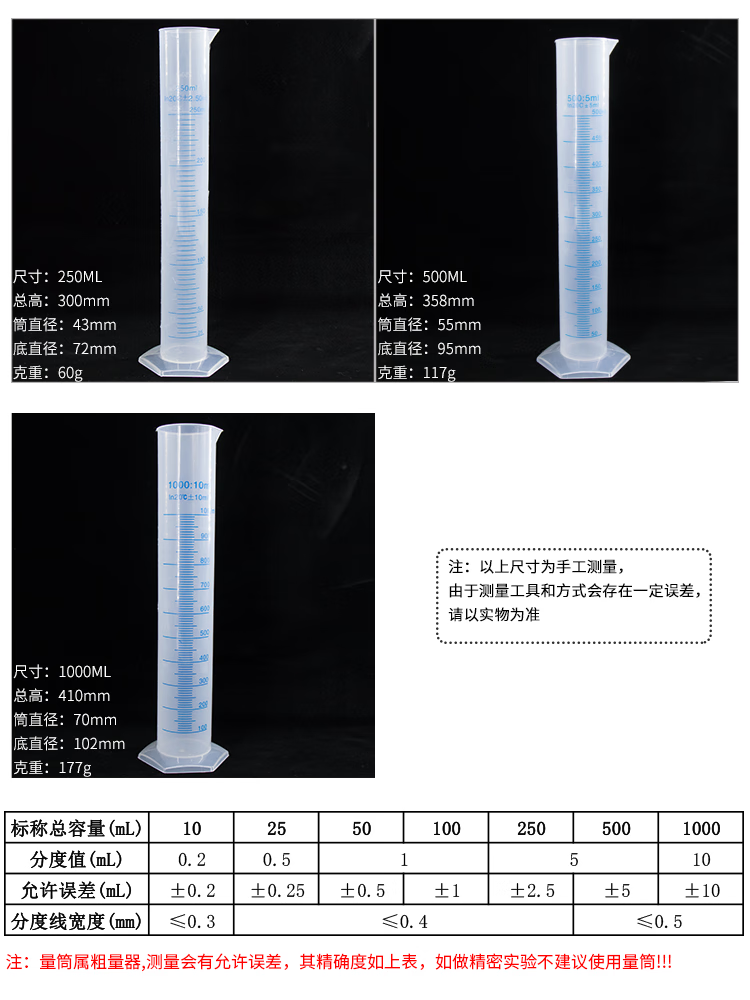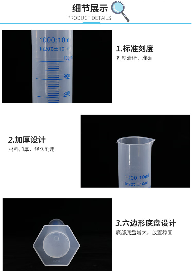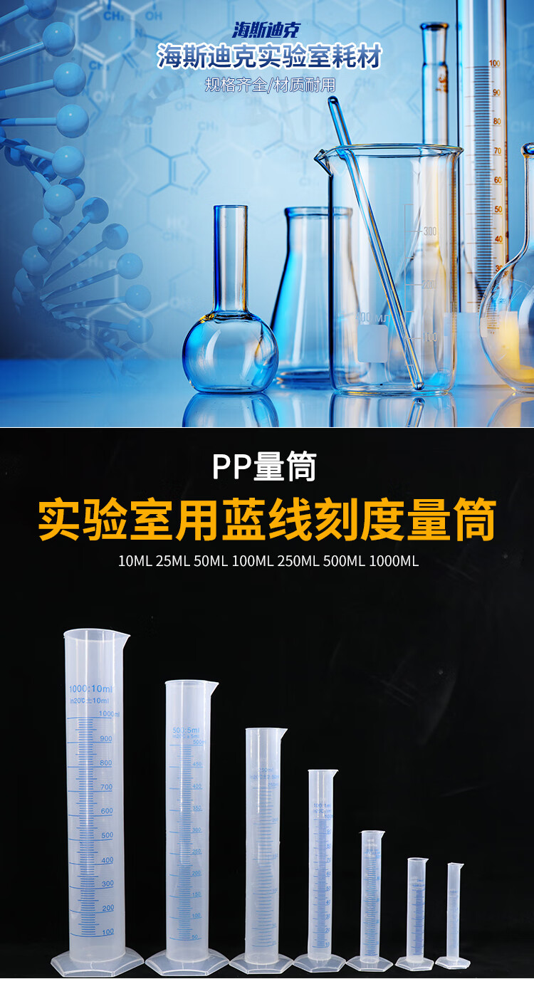 海斯迪克 塑料量筒 KY23-10 PP 10~1000ml 7件 1套