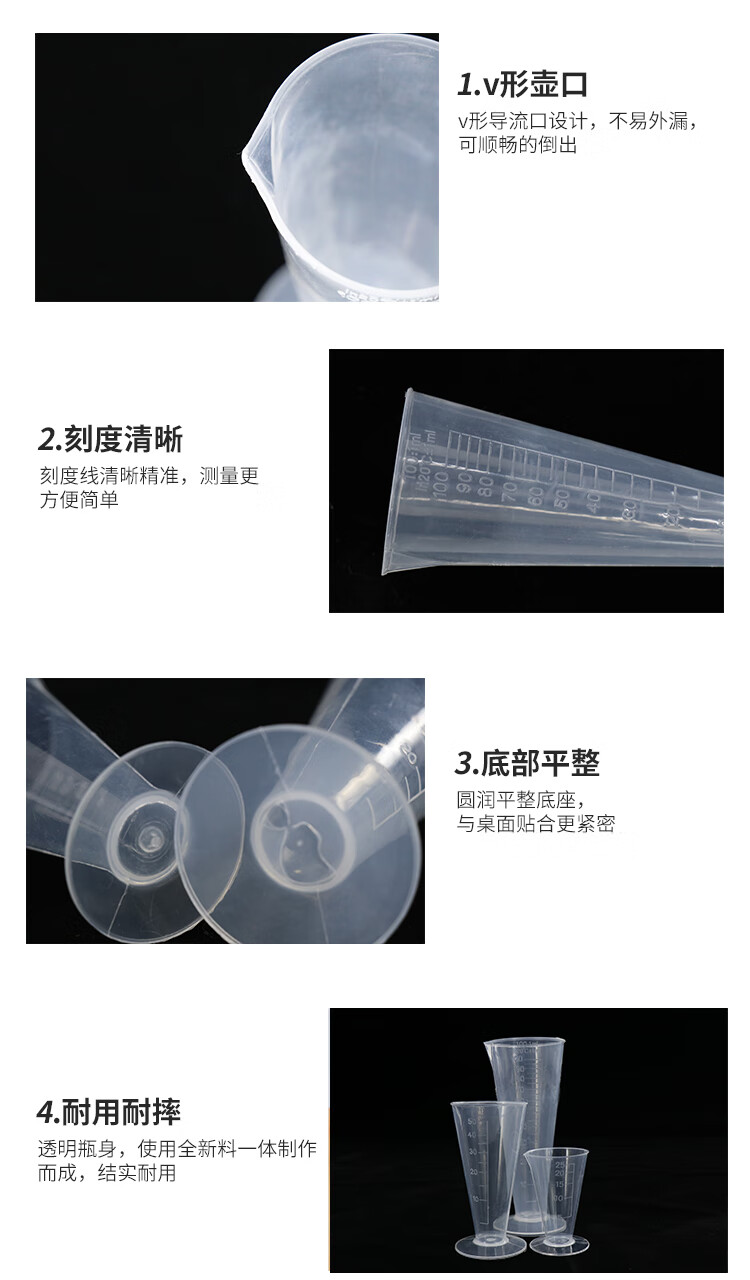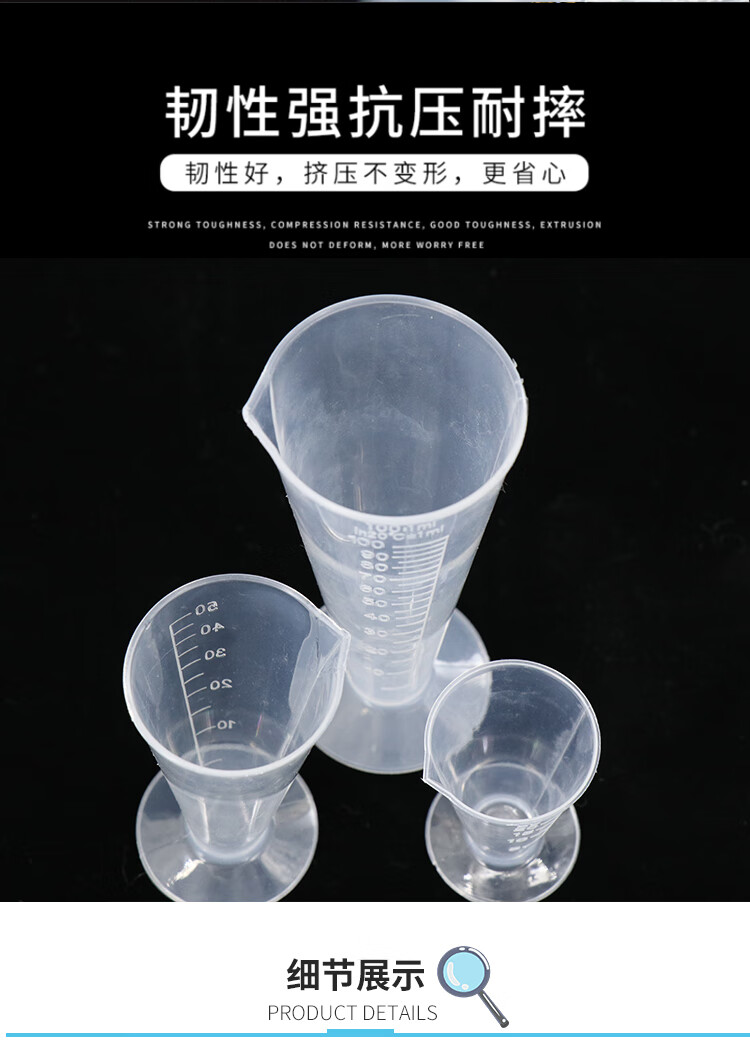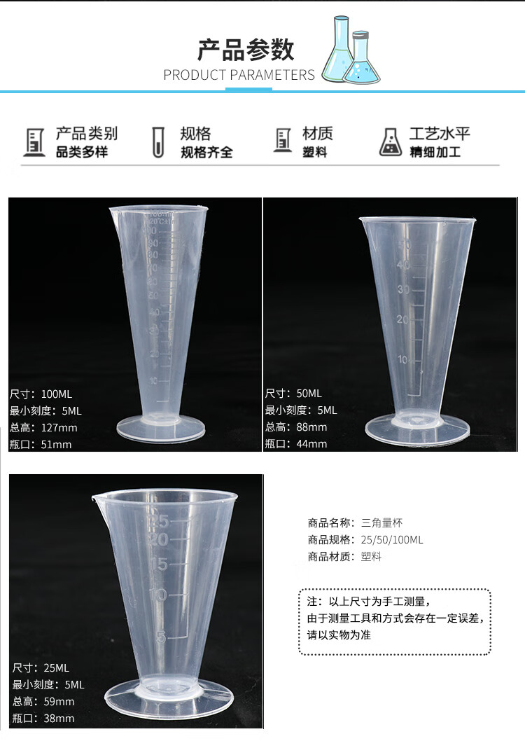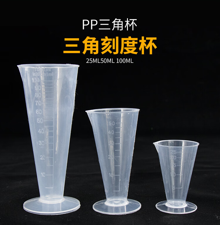 海斯迪克 塑料三角量杯 KY25-4 PP 25+50+100ml 3件 1套