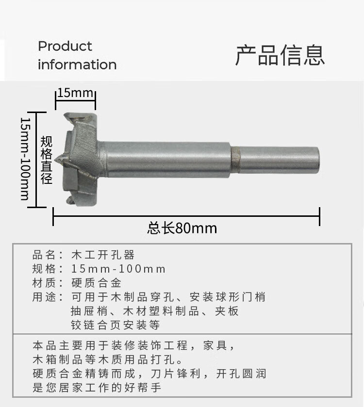海斯迪克 铰链合金木工开孔器 KK13-29 85mm 1个
