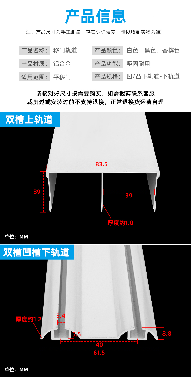 佳兆斯 双凸下轨滑轨槽 白色 1米
