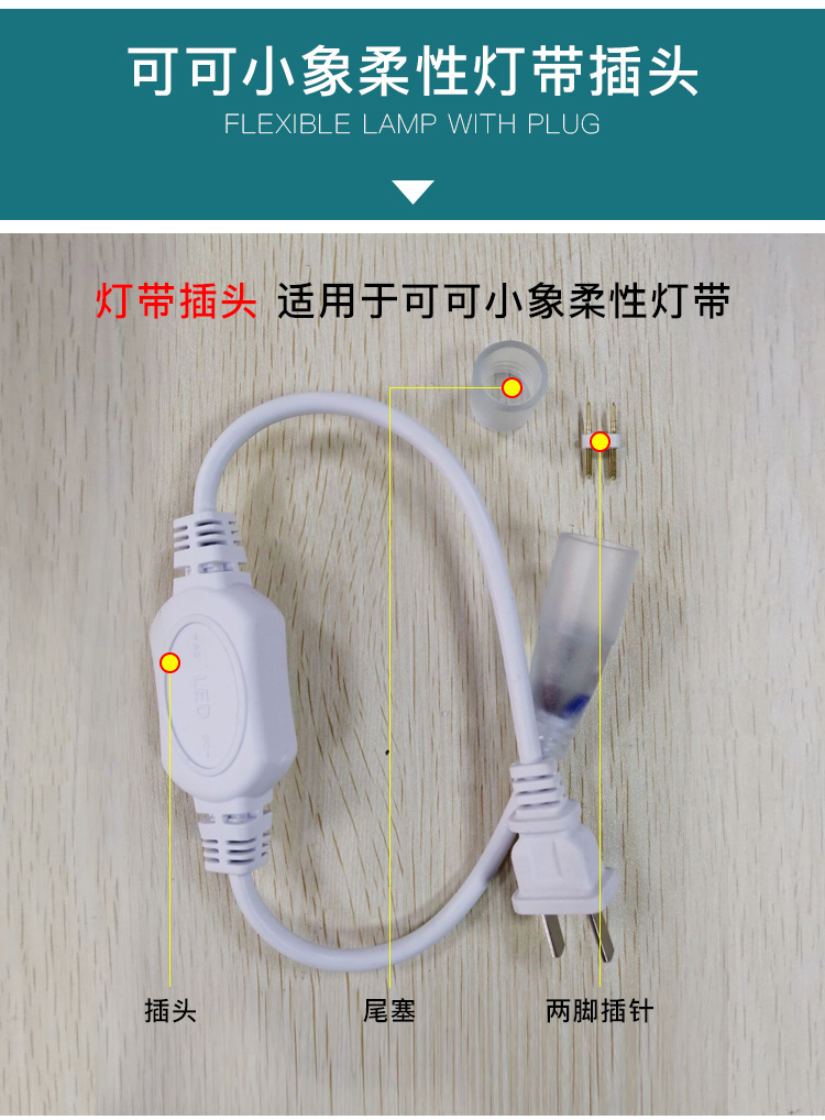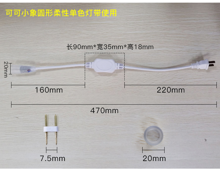 可可小象 led灯带插头 (圆形柔性灯带)单色插头220V 1个