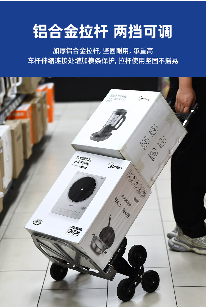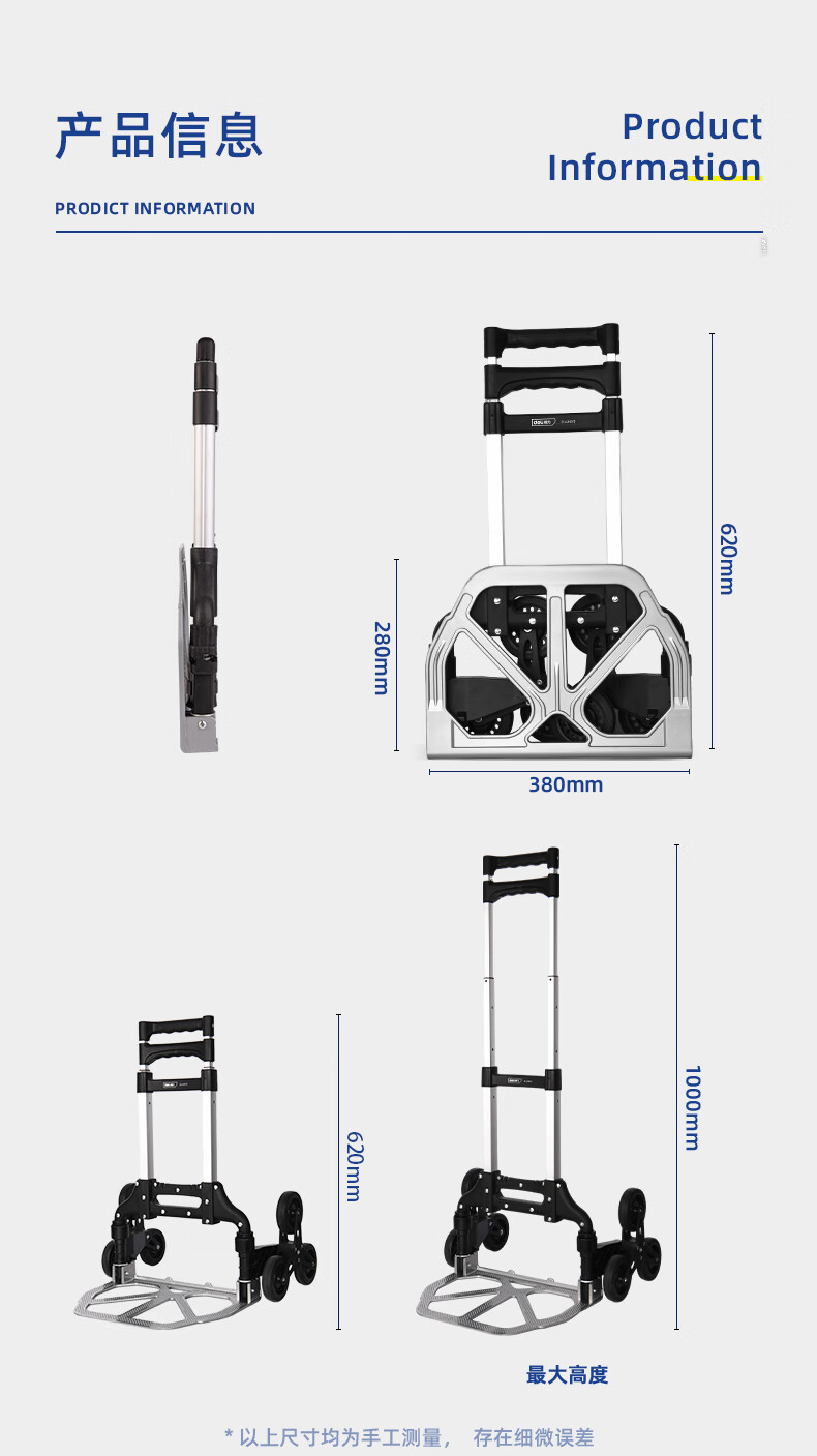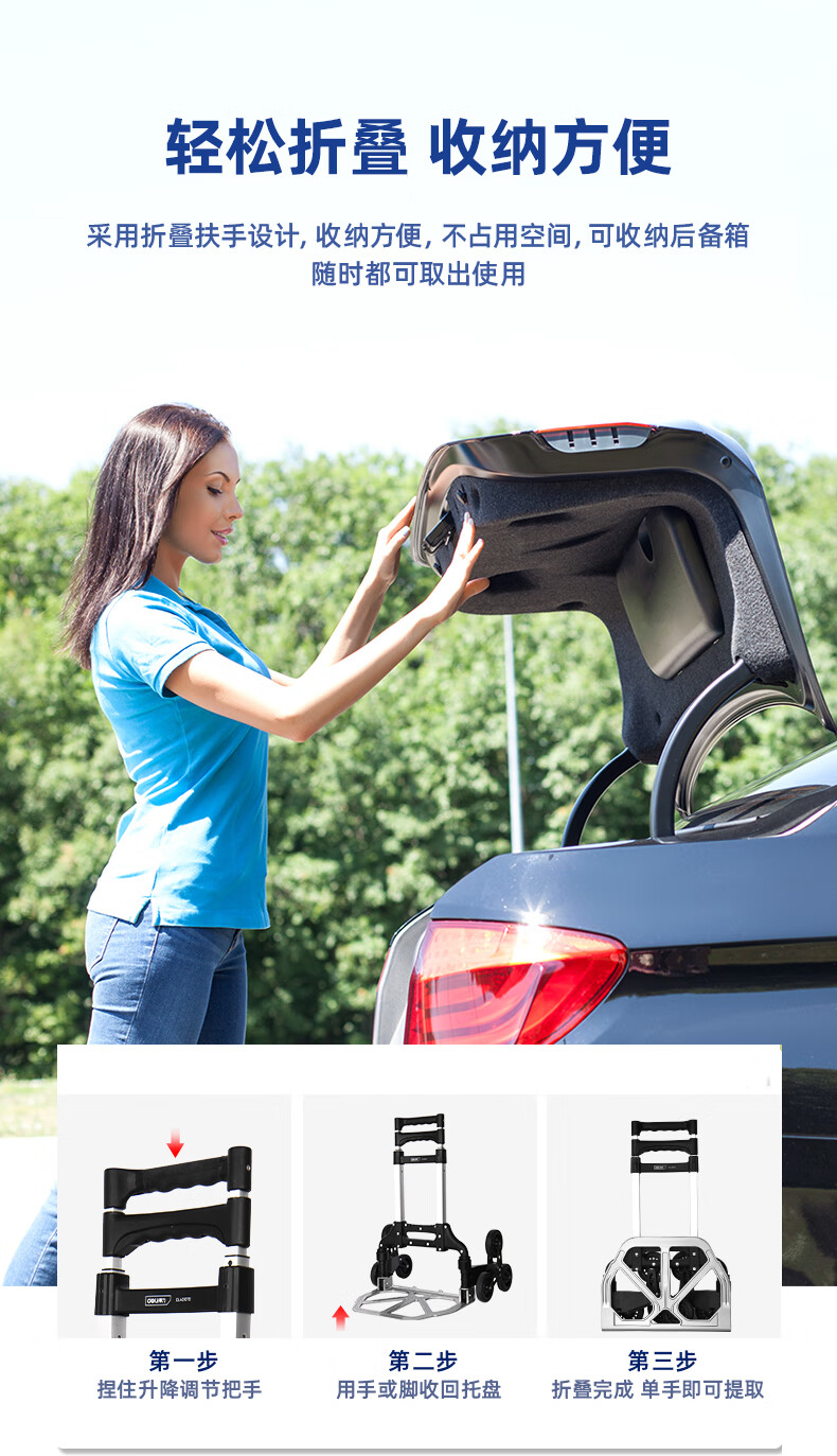 得力 拉杆车 DL431073 承重80kg 爬楼款 银色 1台