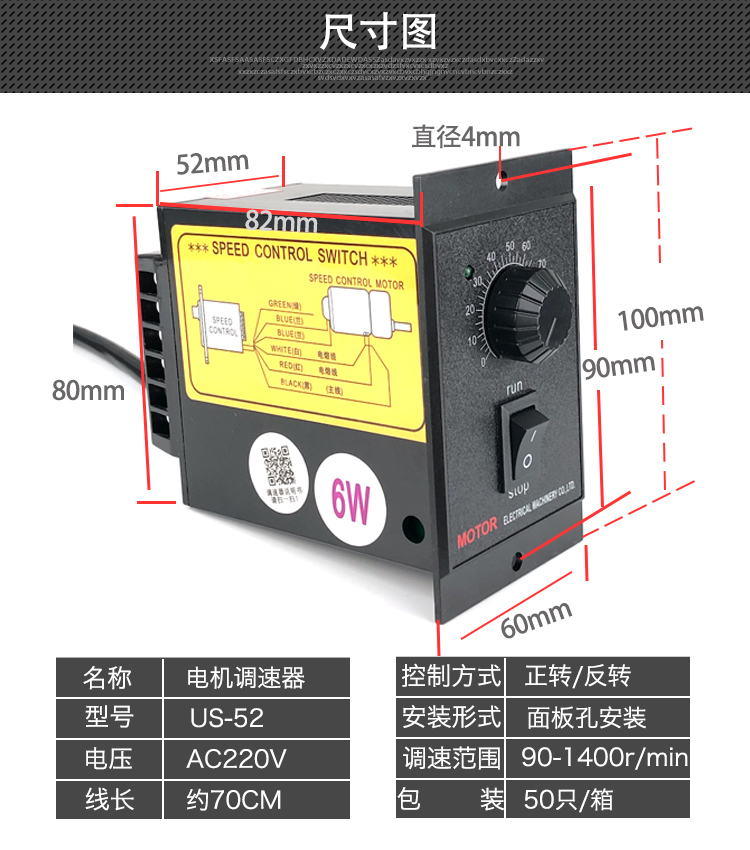国产通用 交流调速电机调速器 US-52 90w排插公头 1个