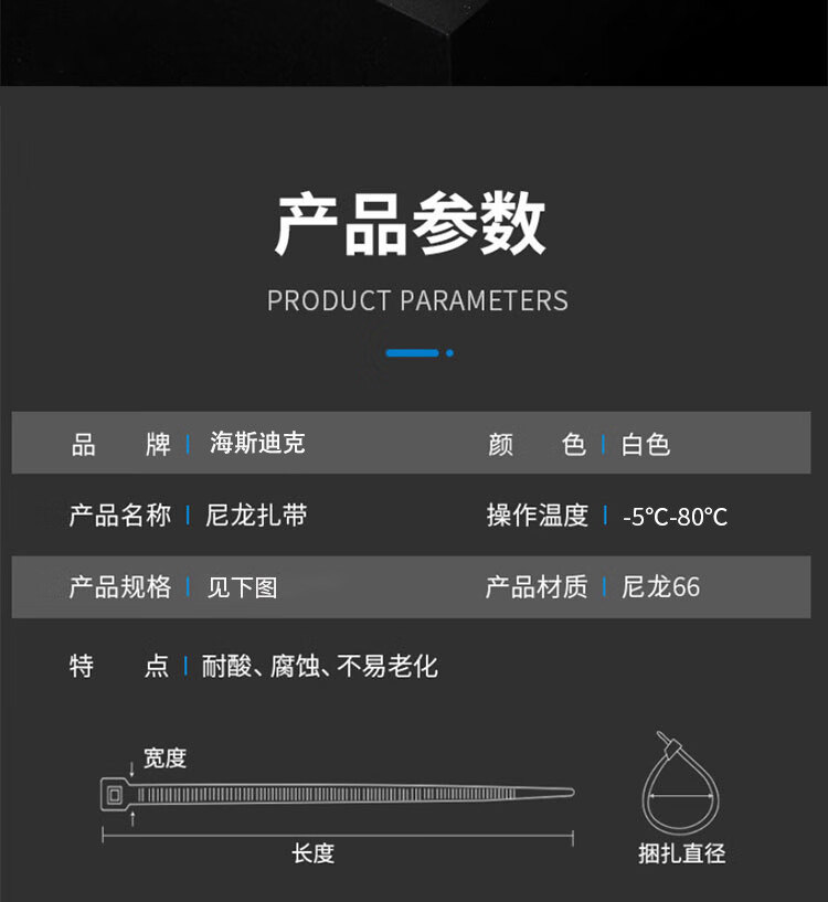 海斯迪克 自锁式尼龙扎带 KB16-26 8*400mm 250条 1件