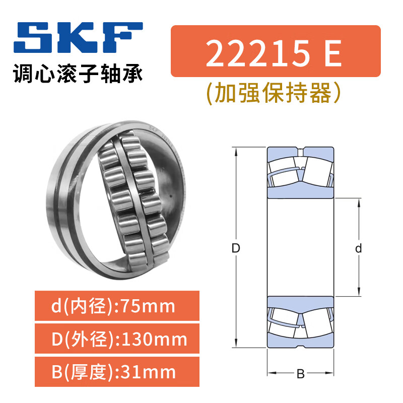 SKF 调心滚子轴承 22215E 130×75×31mm 1个