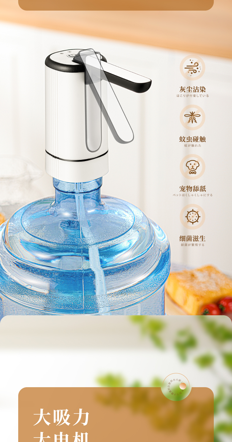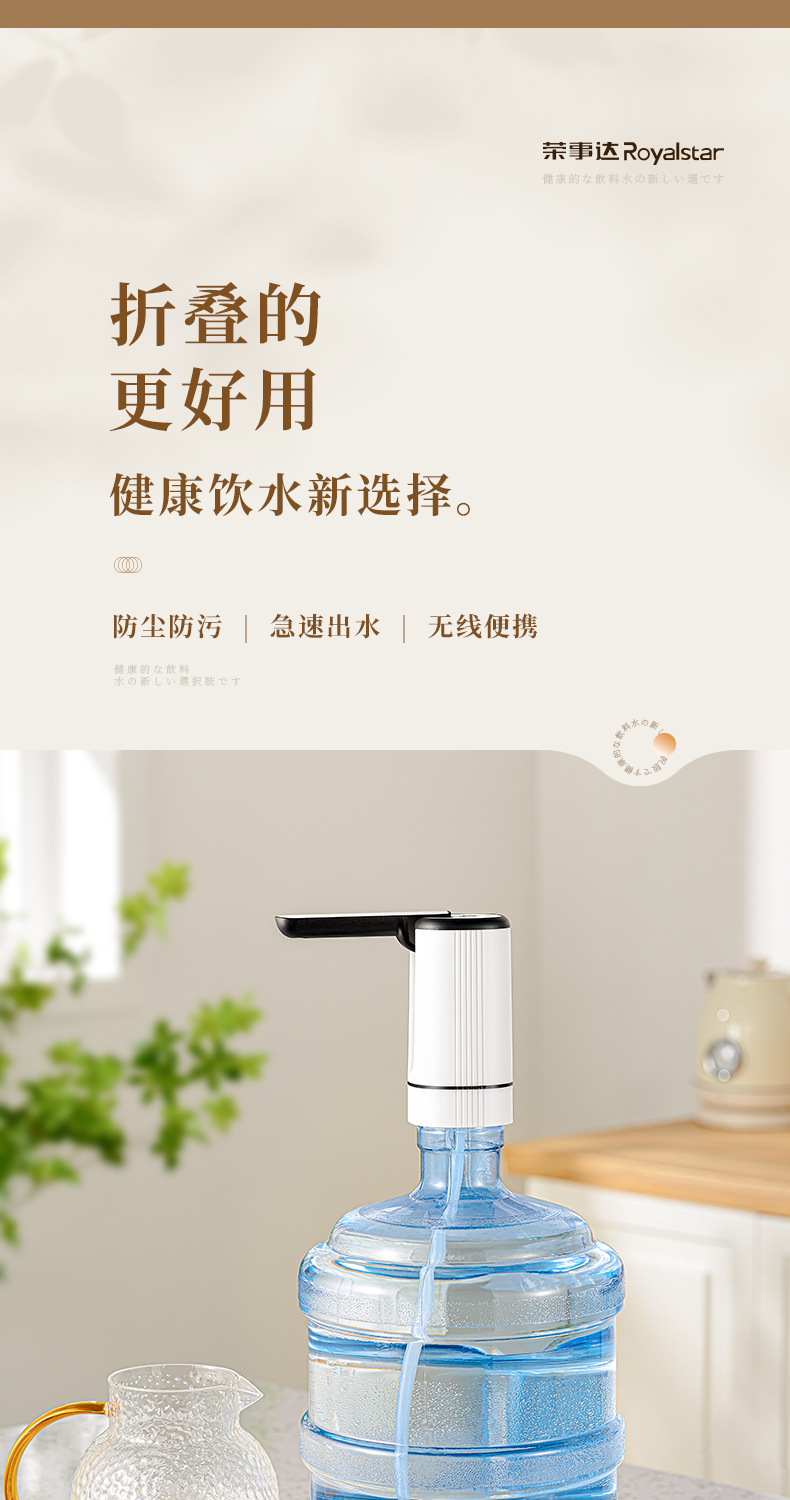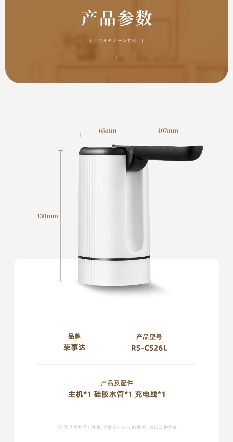 荣事达 电动桶装水抽水器 RS-CS08A3 白银色 折叠定量款 1个