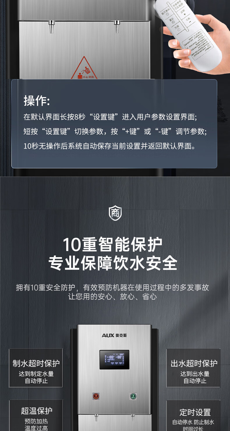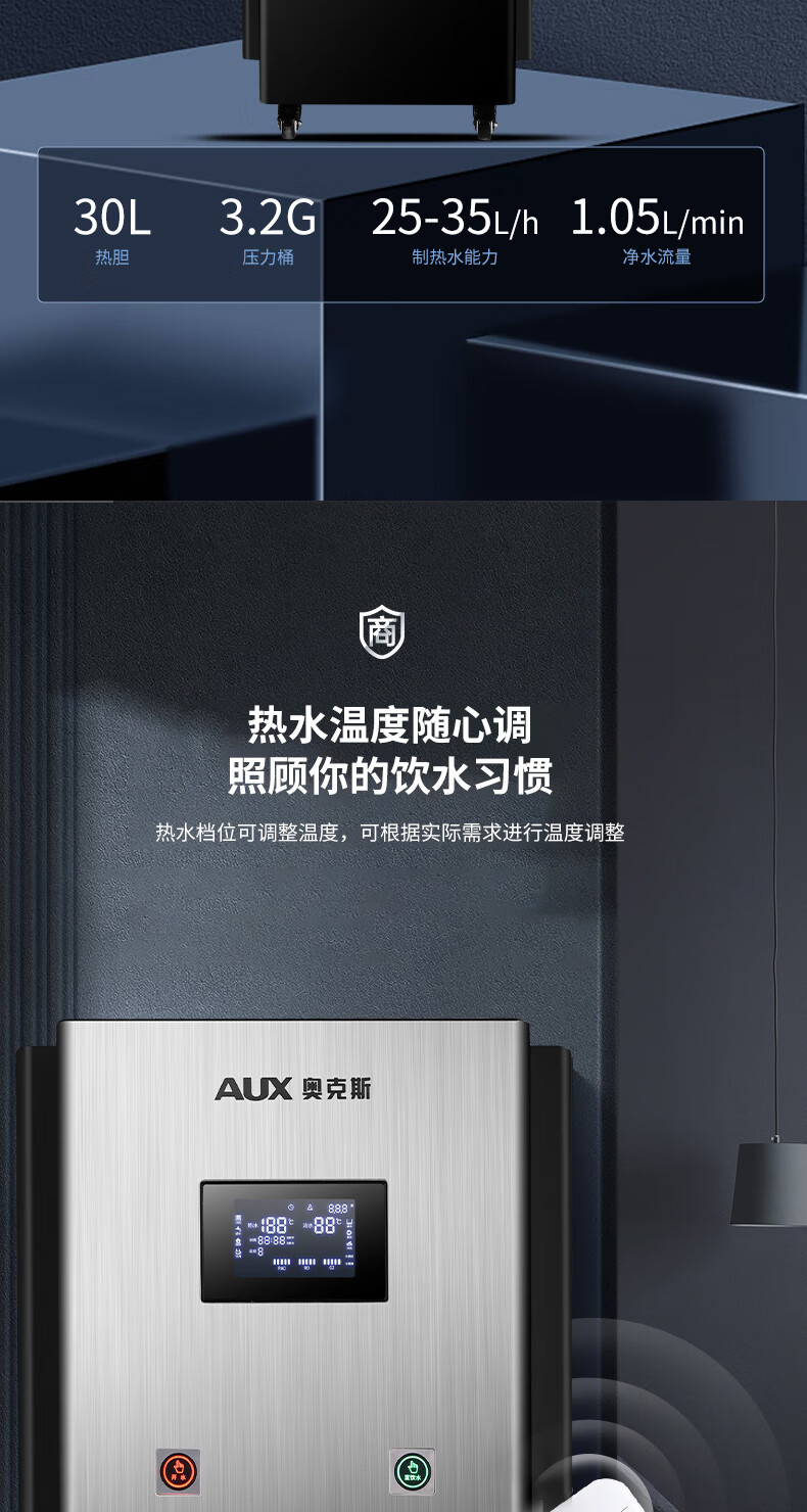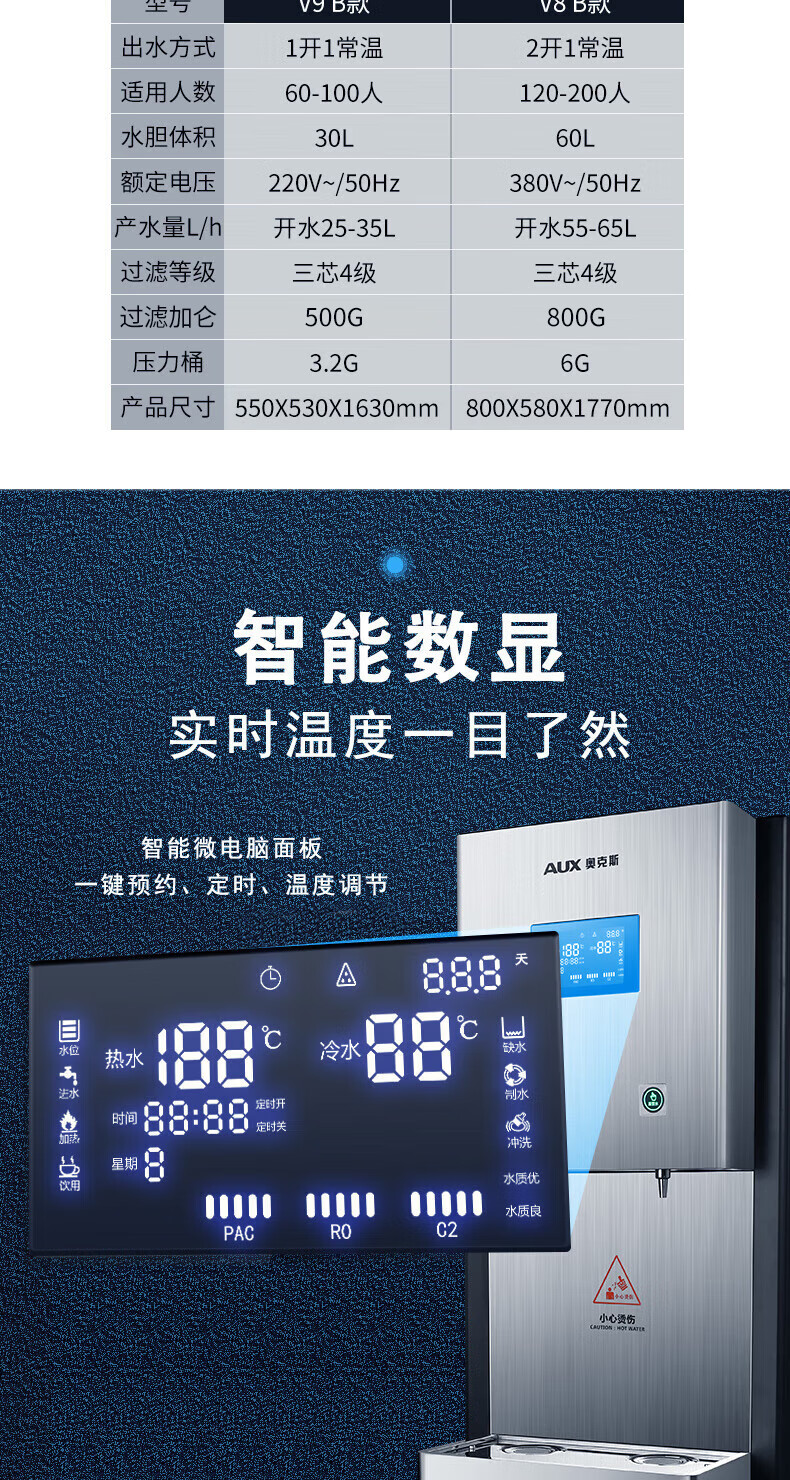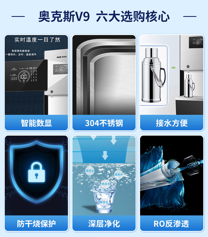 奥克斯 净水器 V9 RO反渗透 一开一温(60~100人) 1个