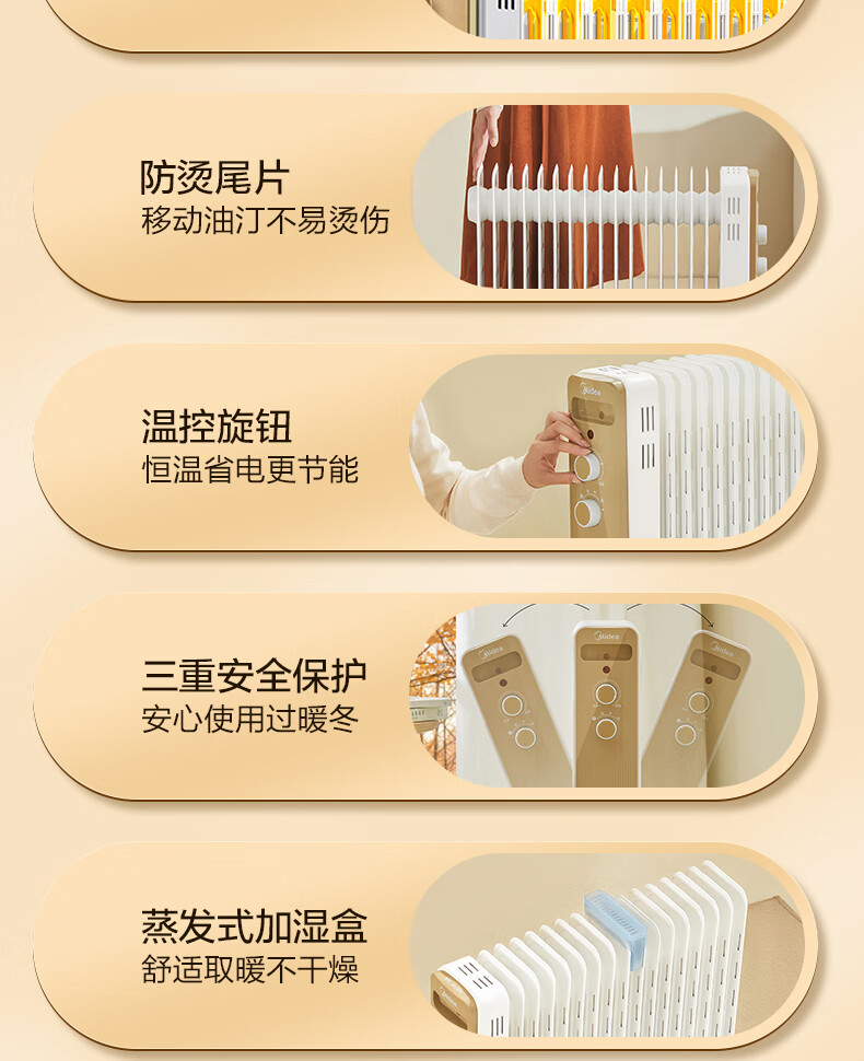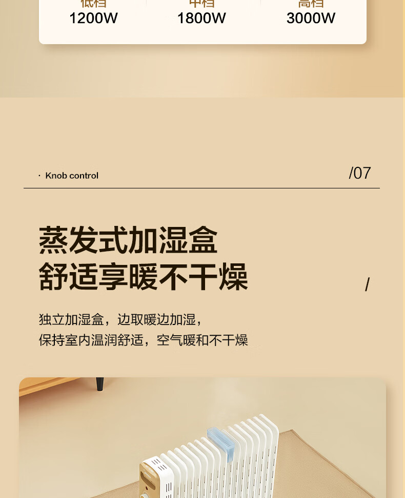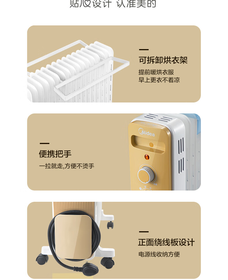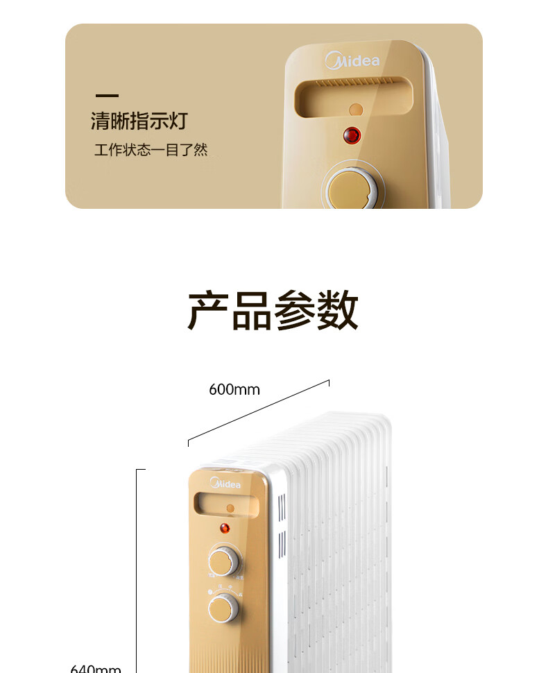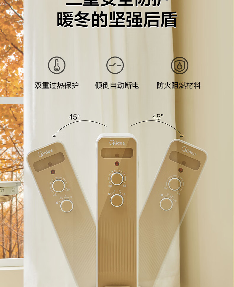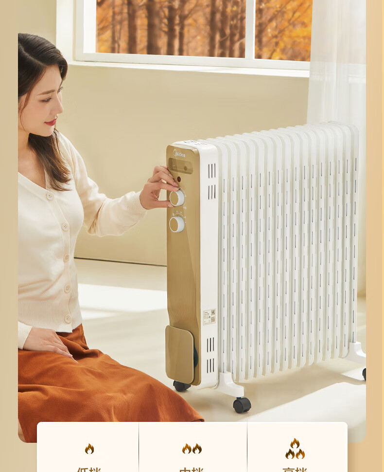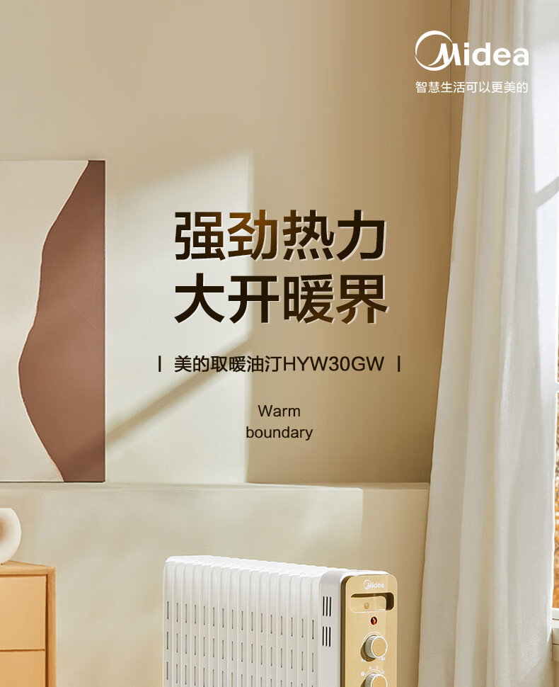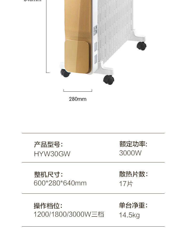 美的 电热取暖器 HYW30GW 三挡调节(1200/1800/3000W) 1个