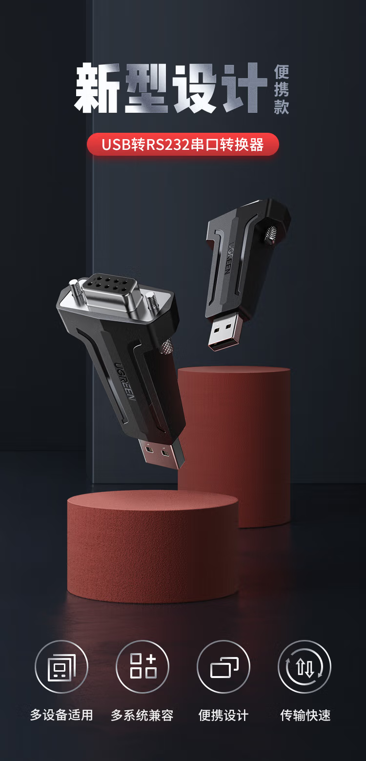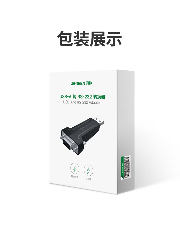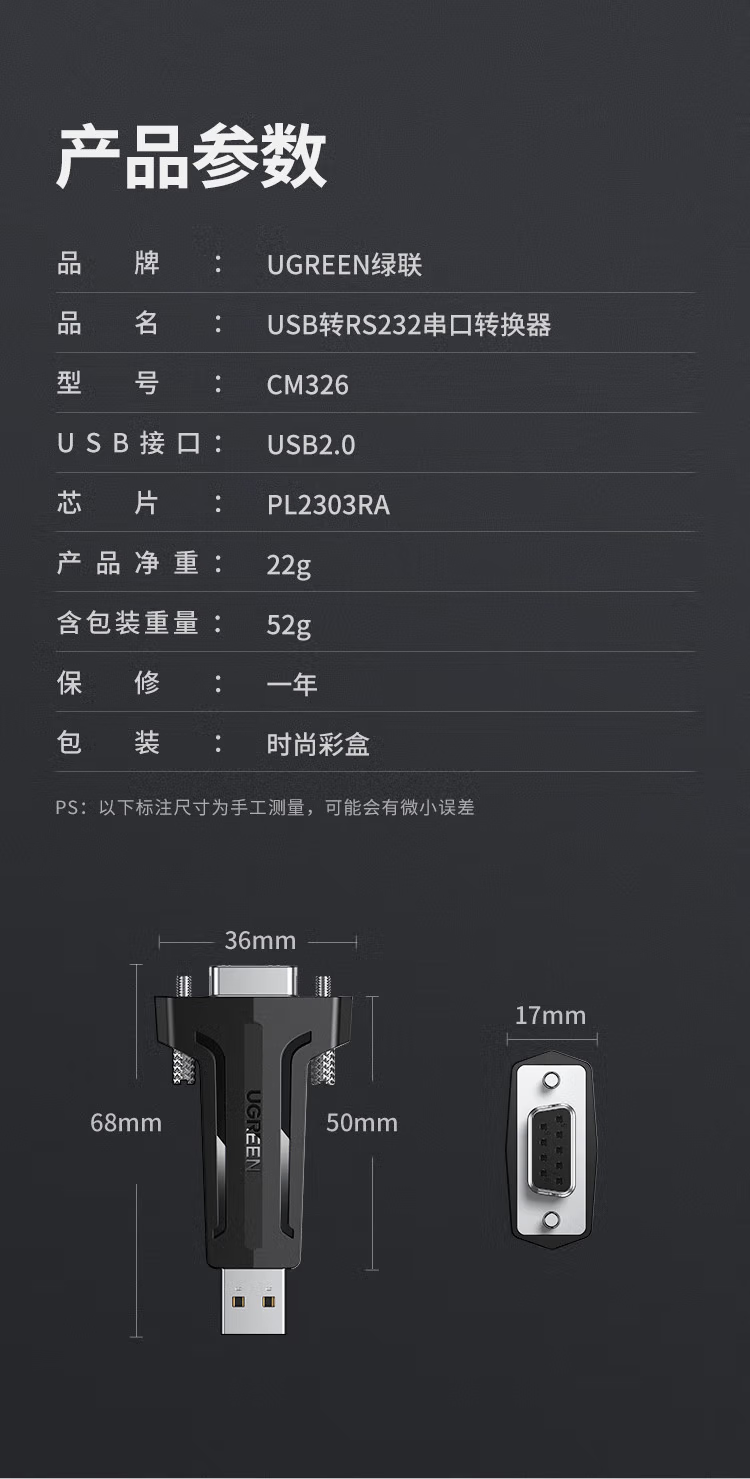 绿联 USB转RS232串口打印机线 CM326/80111 36*68*50mm 1个