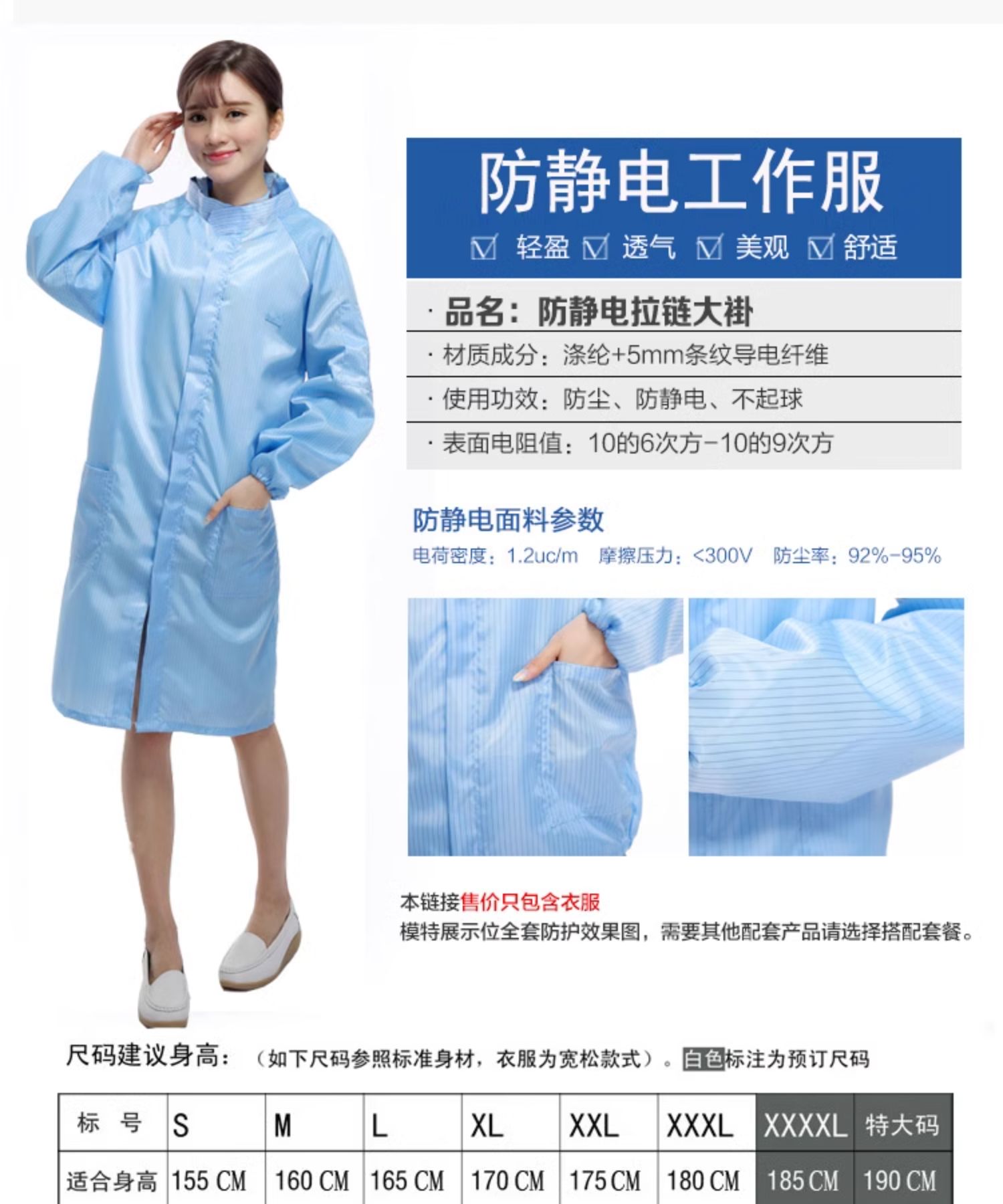 海斯迪克 防静电连帽大褂 HKWX20 蓝色 2XL码 1件