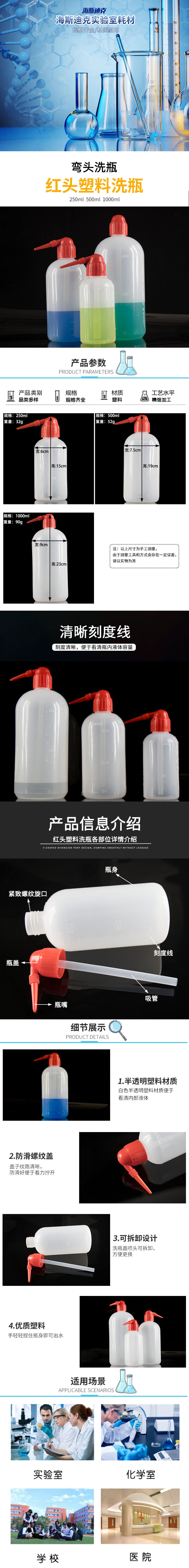 海斯迪克 塑料洗瓶 KY29-7 LDPE 红头 1000ml 1个