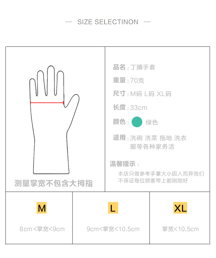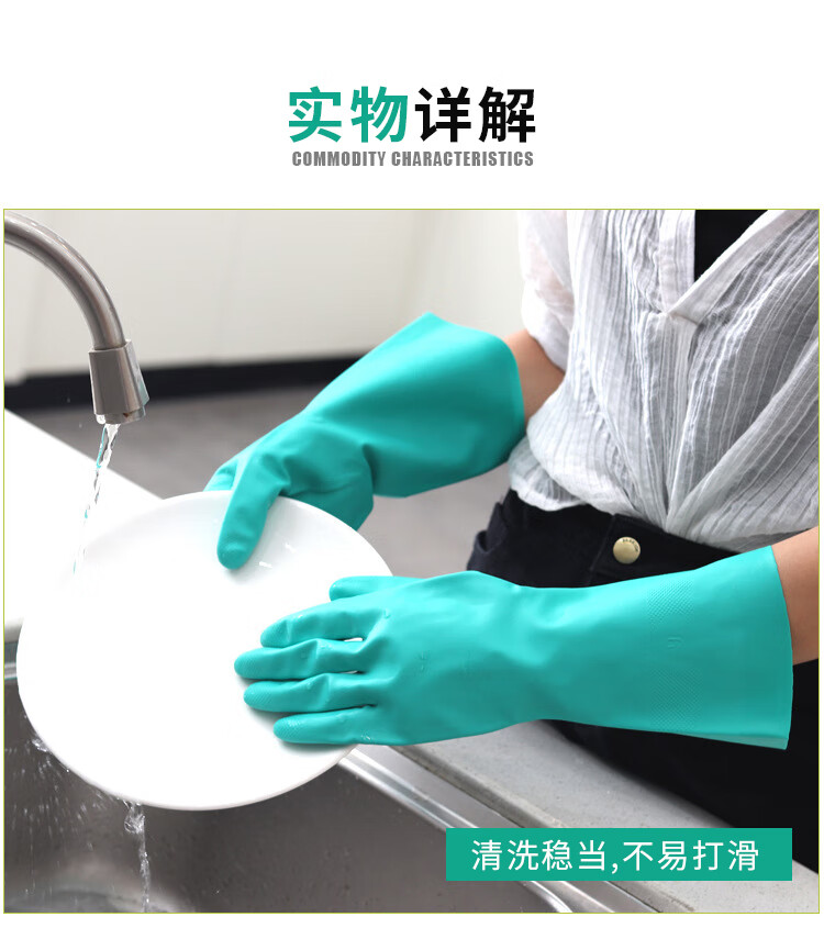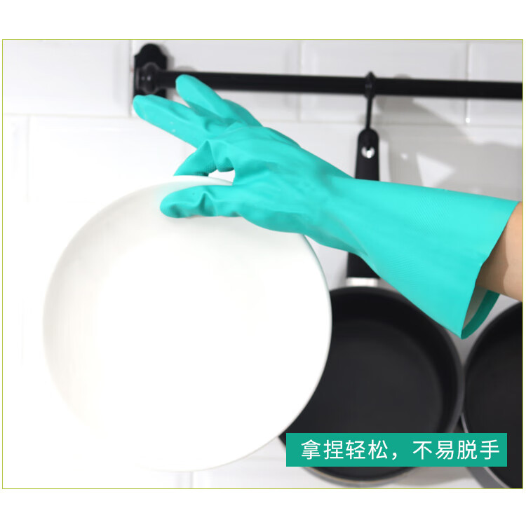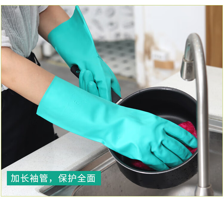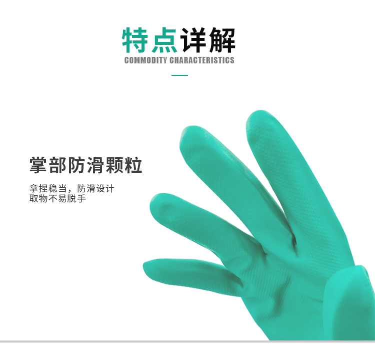 海斯迪克 丁腈防水手套 KG48-1 绿色M 1双