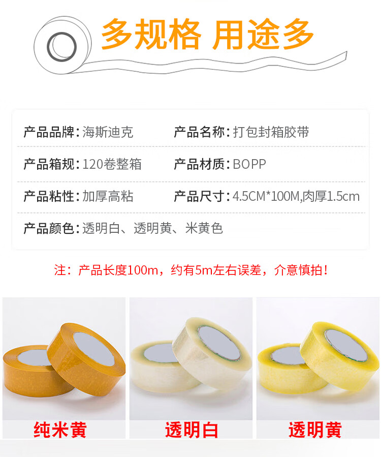 海斯迪克 封箱胶带 KB23-1 米黄色 4.5*100m 1卷