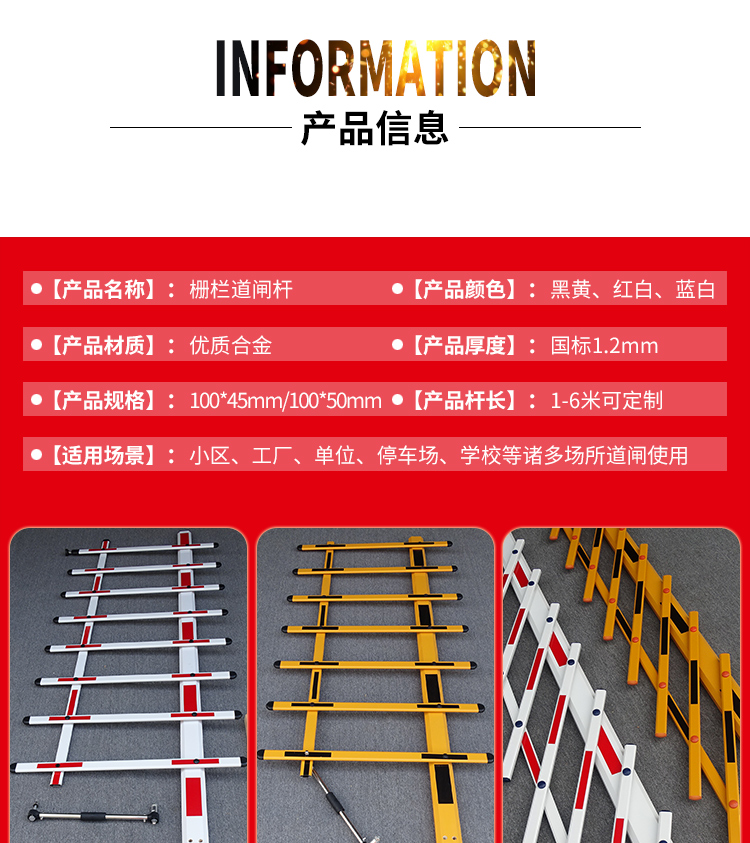 国产通用 栅栏道闸杆 4.5米红白栅栏 1个