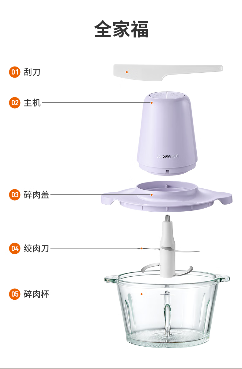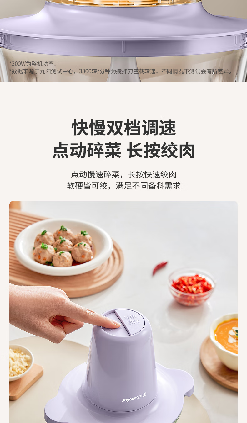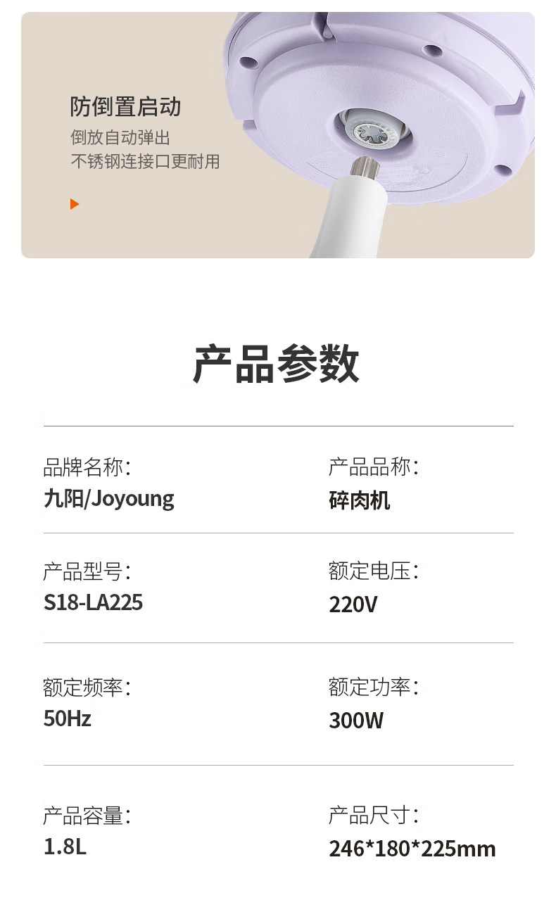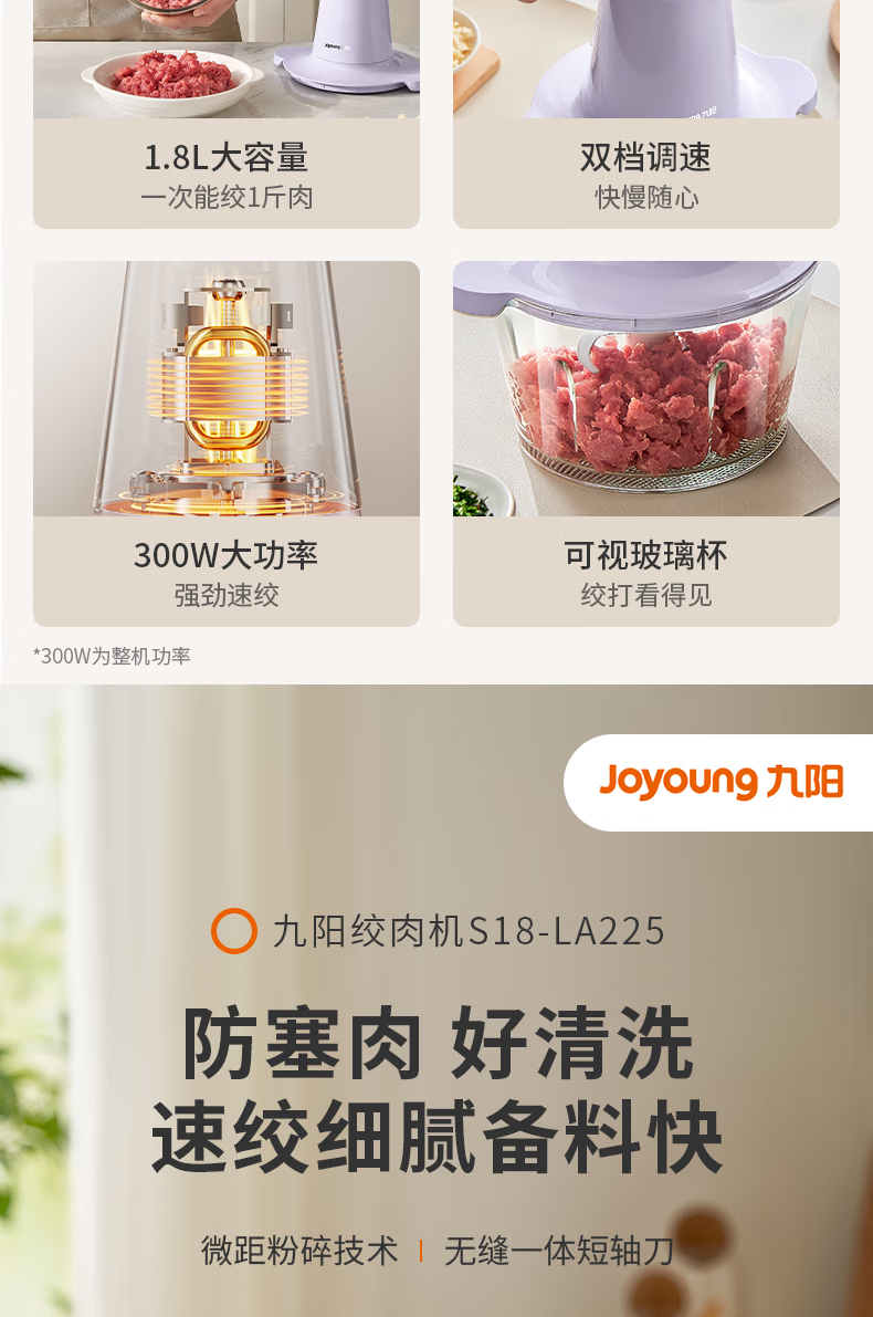 九阳 多功能电动绞肉机 S18-LA225 紫色 1.8L 1个