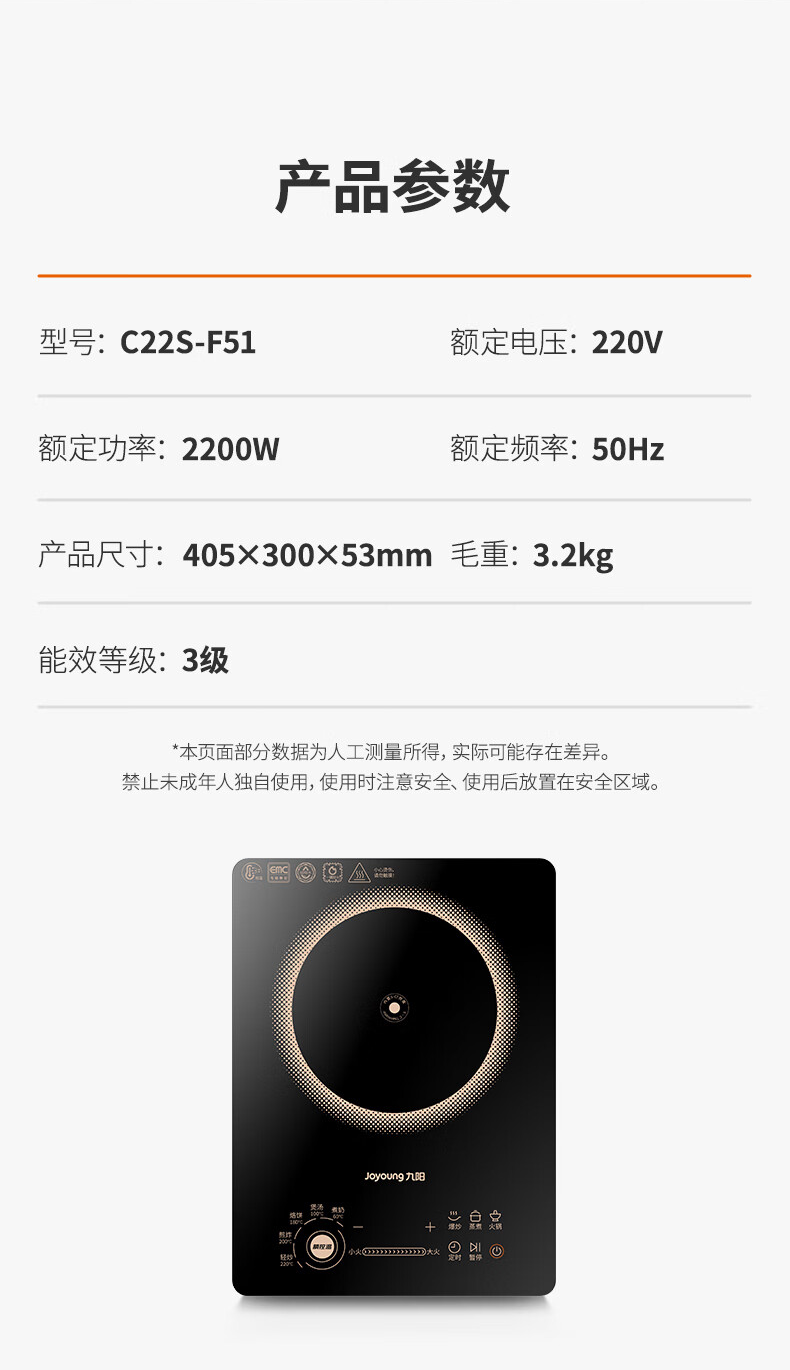 九阳 电磁炉 C22S-F51-B4 2200W 10档 1台