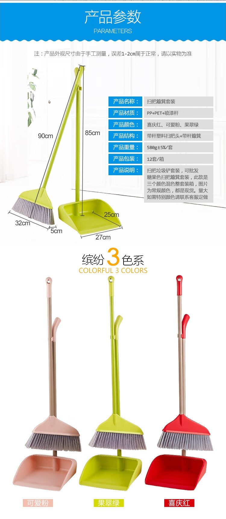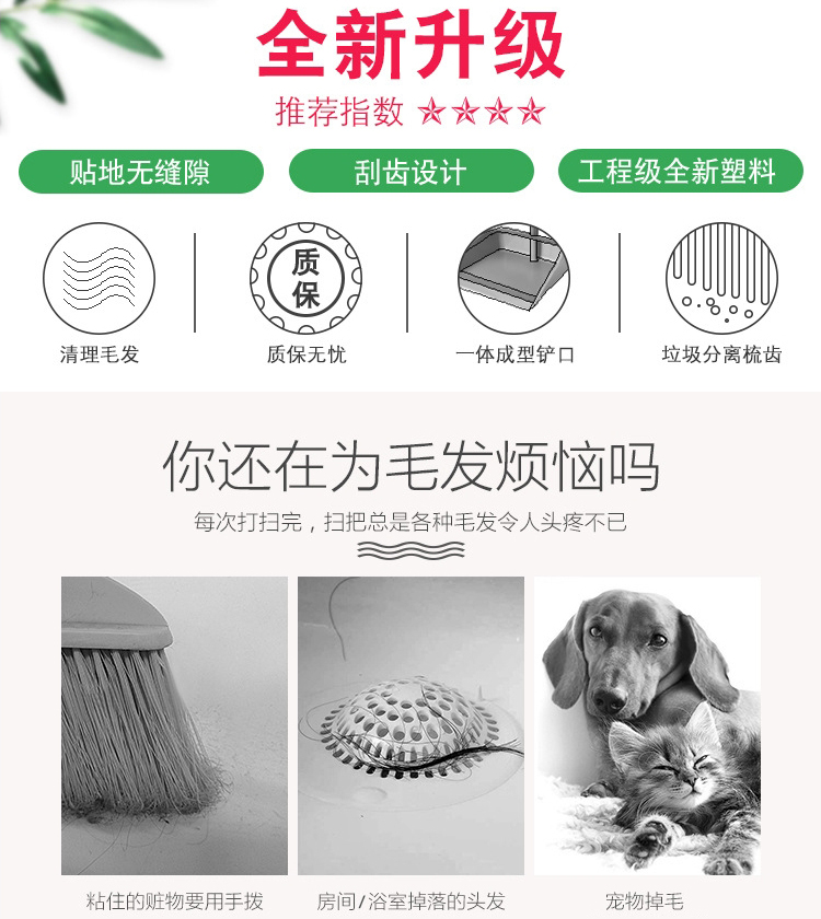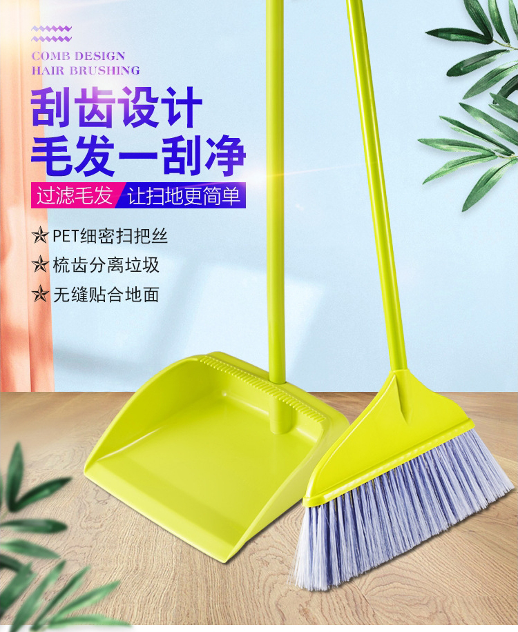 海斯迪克 塑料软毛扫把簸箕套装 KQ63-2 扫帚垃圾斗组合装 红色 1套