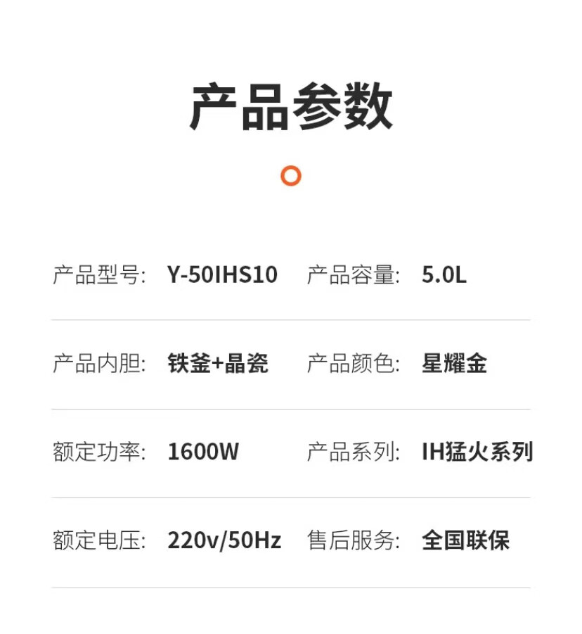 九阳 双胆铁釜电压力煲 Y-50IHS10 5L 1600W 1个