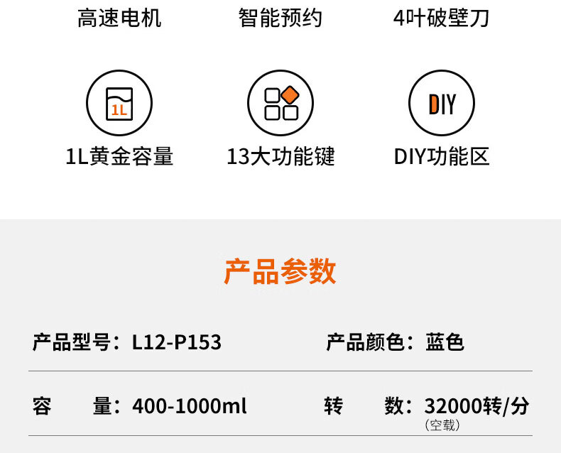 九阳 高速破壁调理机 L12-P153 1L 700W 1台