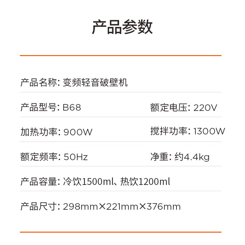 九阳 变频轻音破壁机 B68 1.5L 1台