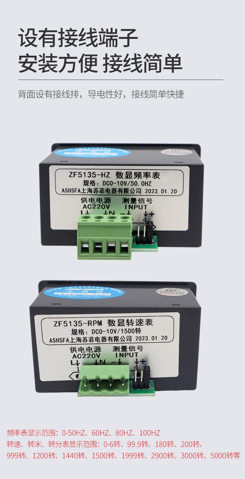 上海苏菲 数显转速表 DC0-10V/1500转 AC220V 1个