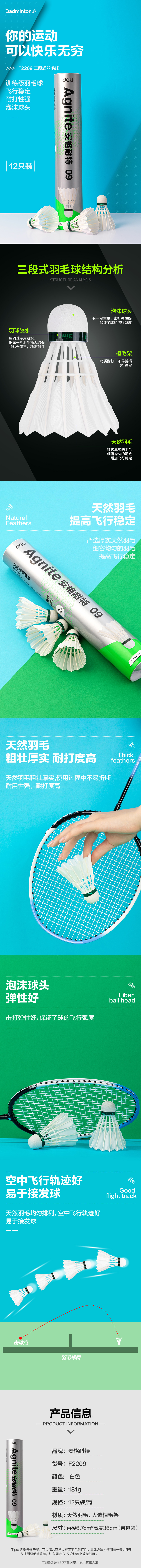 得力 安格耐特羽毛球 F2209 白色 6.7*36mm 12只 1筒