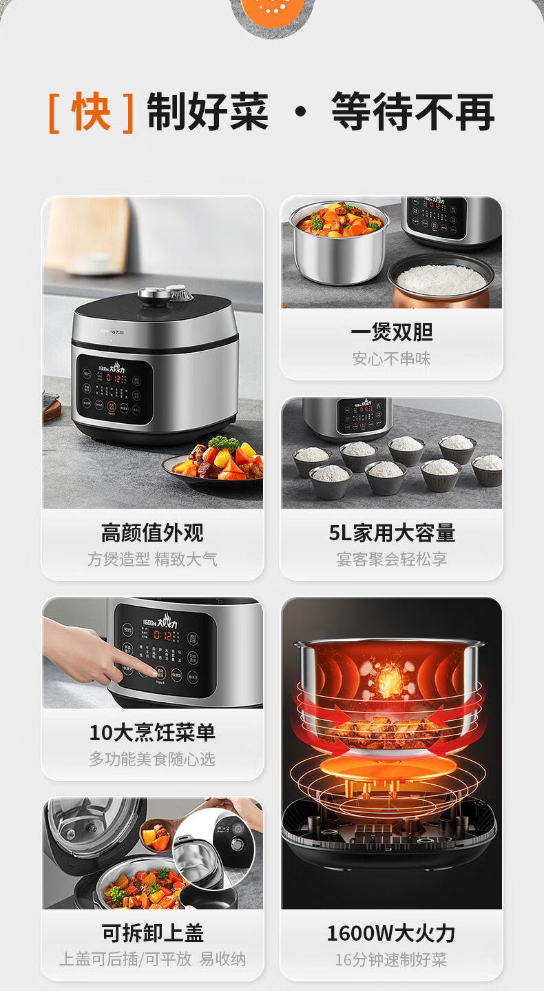 九阳 0涂层双胆电压力锅 Y50C-H1Pro 5L 1600W 1个